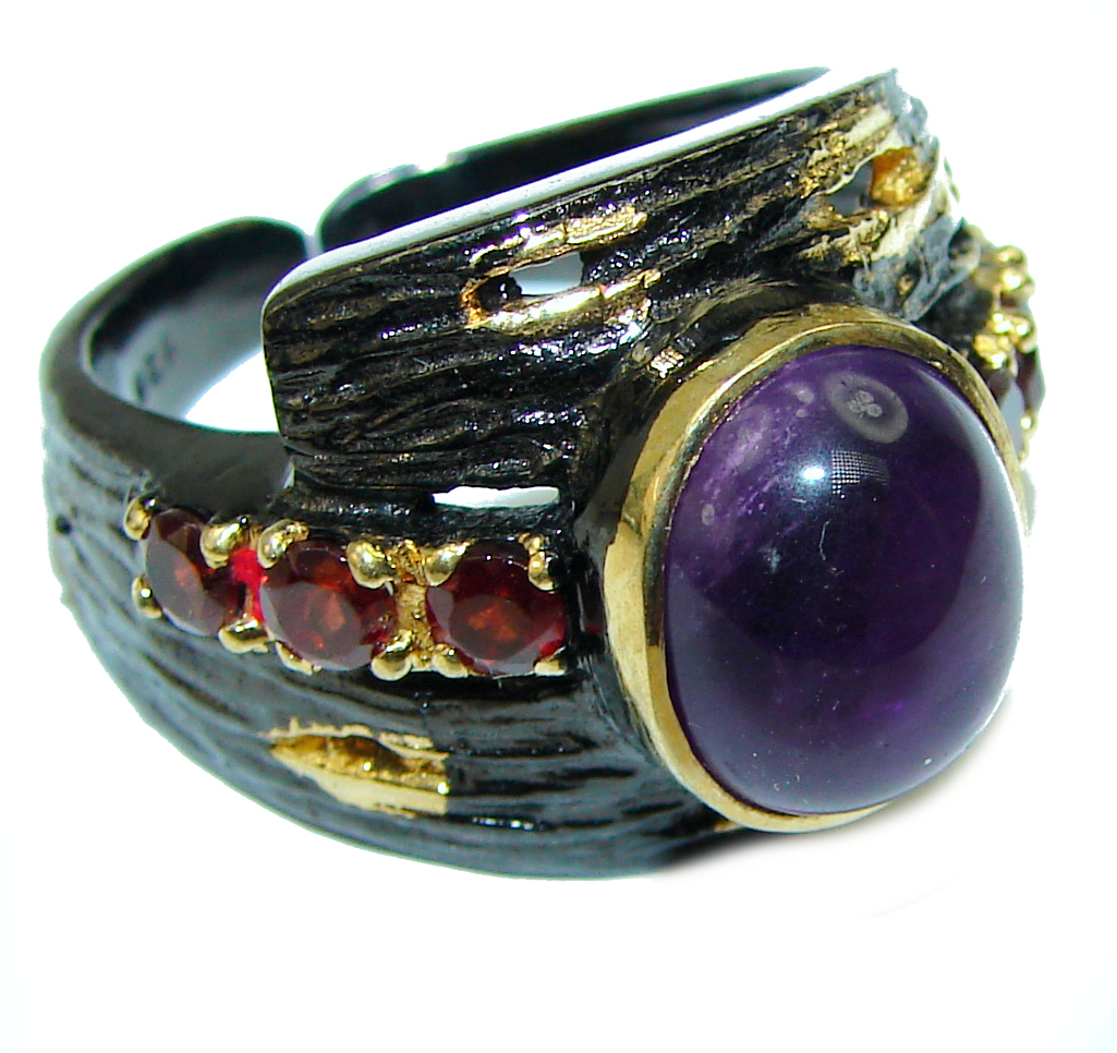 Genuine Amethyst black rhodium over .925 Sterling Silver Handcrafted Ring size 8
