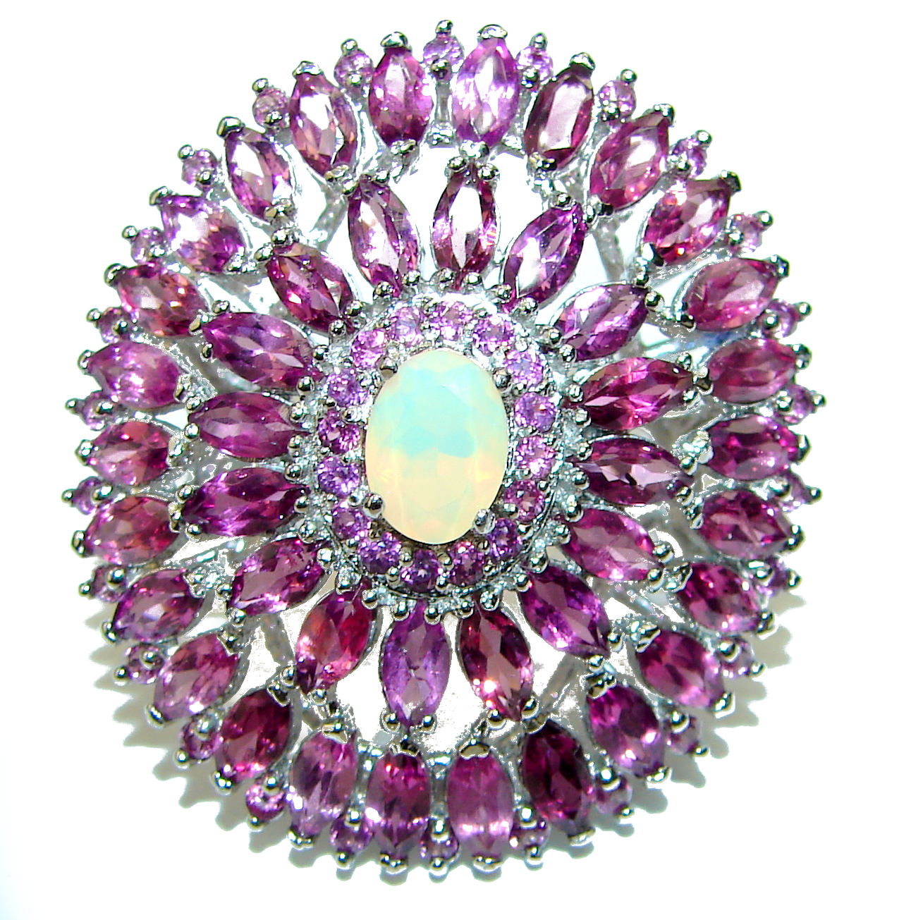 25.5 carat Ethiopian Opal Garnet .925 Sterling Silver handcrafted ring size 7 1/2
