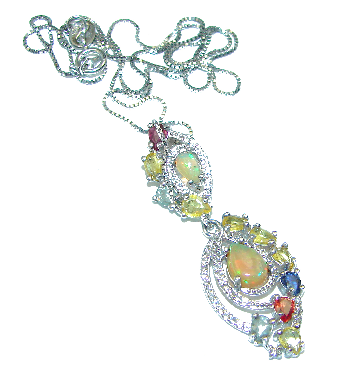 Real Masterpiece Natural Ethiopian Opal .925 Sterling Silver Necklace
