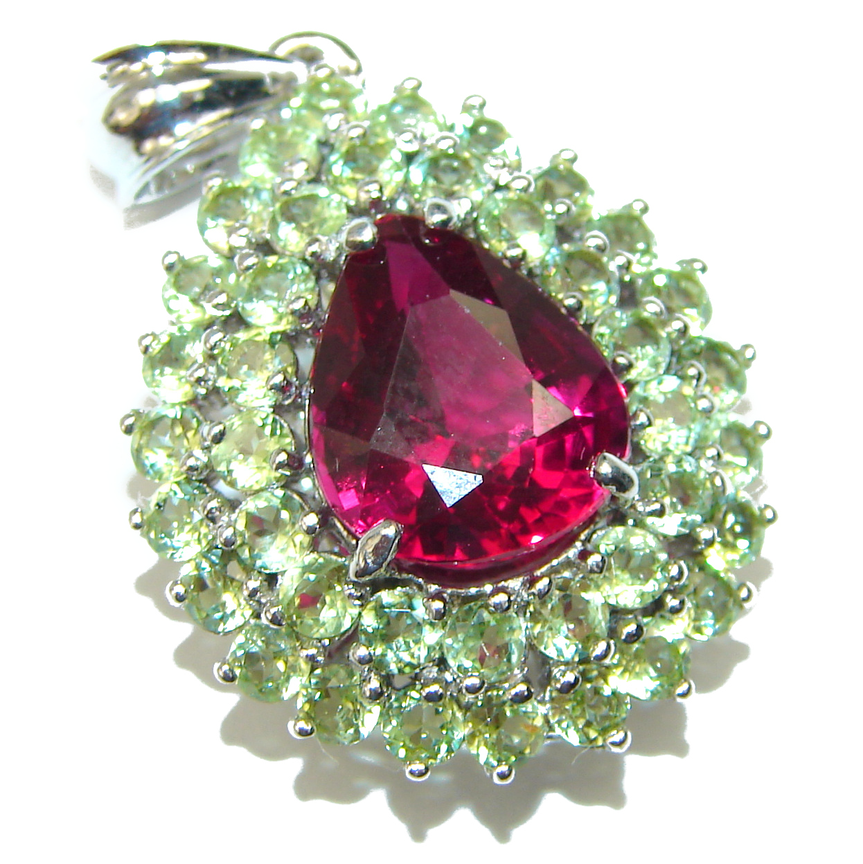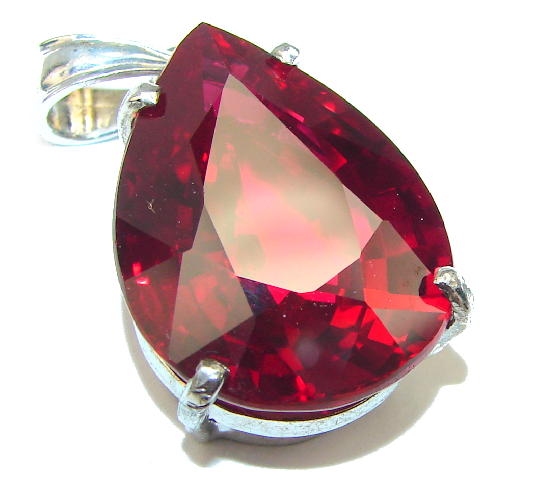 Pear cut 10.5 carat Deep Red Topaz .925 Sterling Silver handmade Pendant