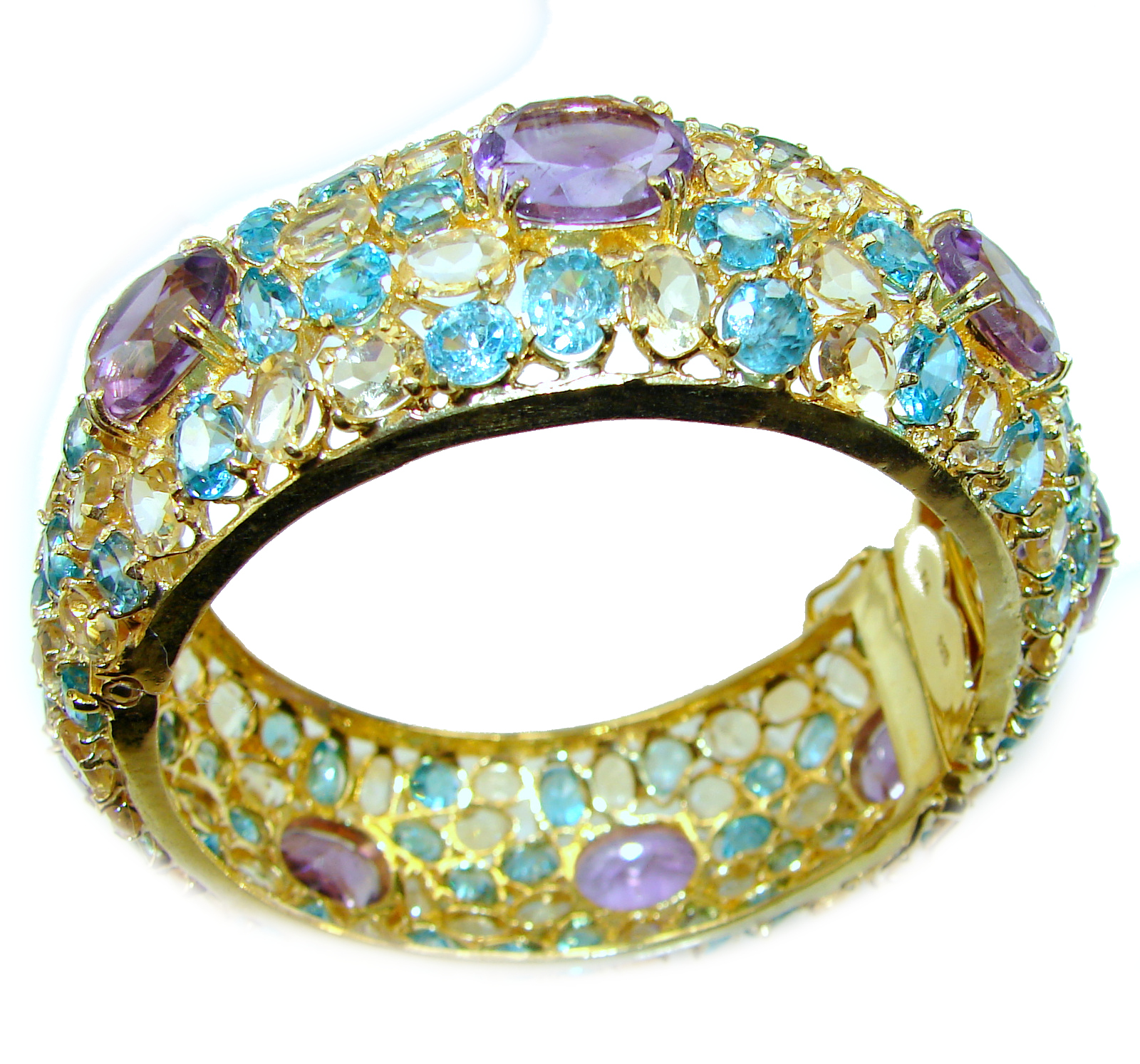 Huge Spectacular authentic Amethyst 14K Gold over .925 Sterling Silver handmade bangle Bracelet