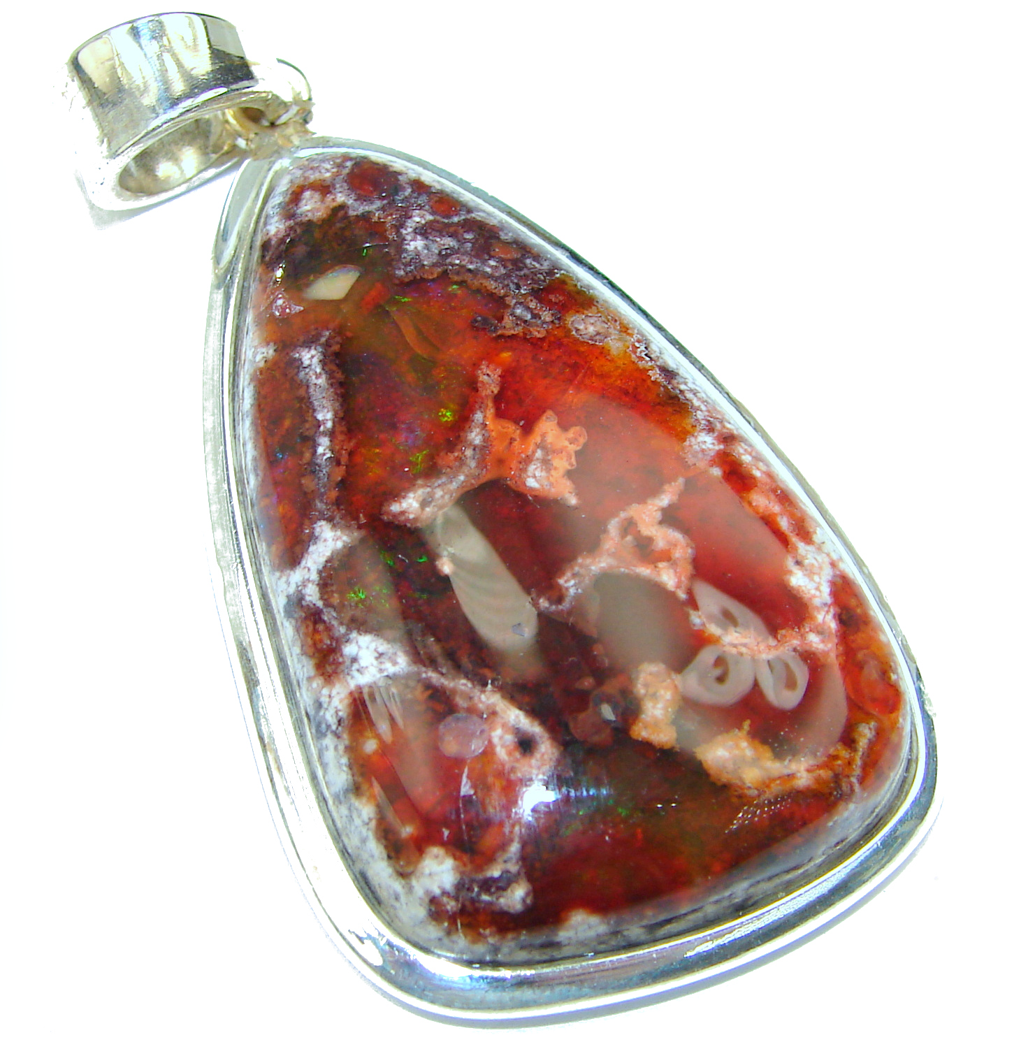 Spectacular Natural Mexican Fire Opal .925 Sterling Silver handmade Pendant