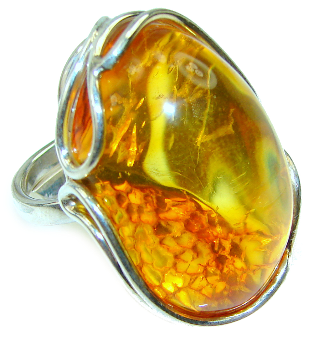 Huge Authentic Baltic Amber .925 Sterling Silver handcrafted ring; s. 8 adjustable