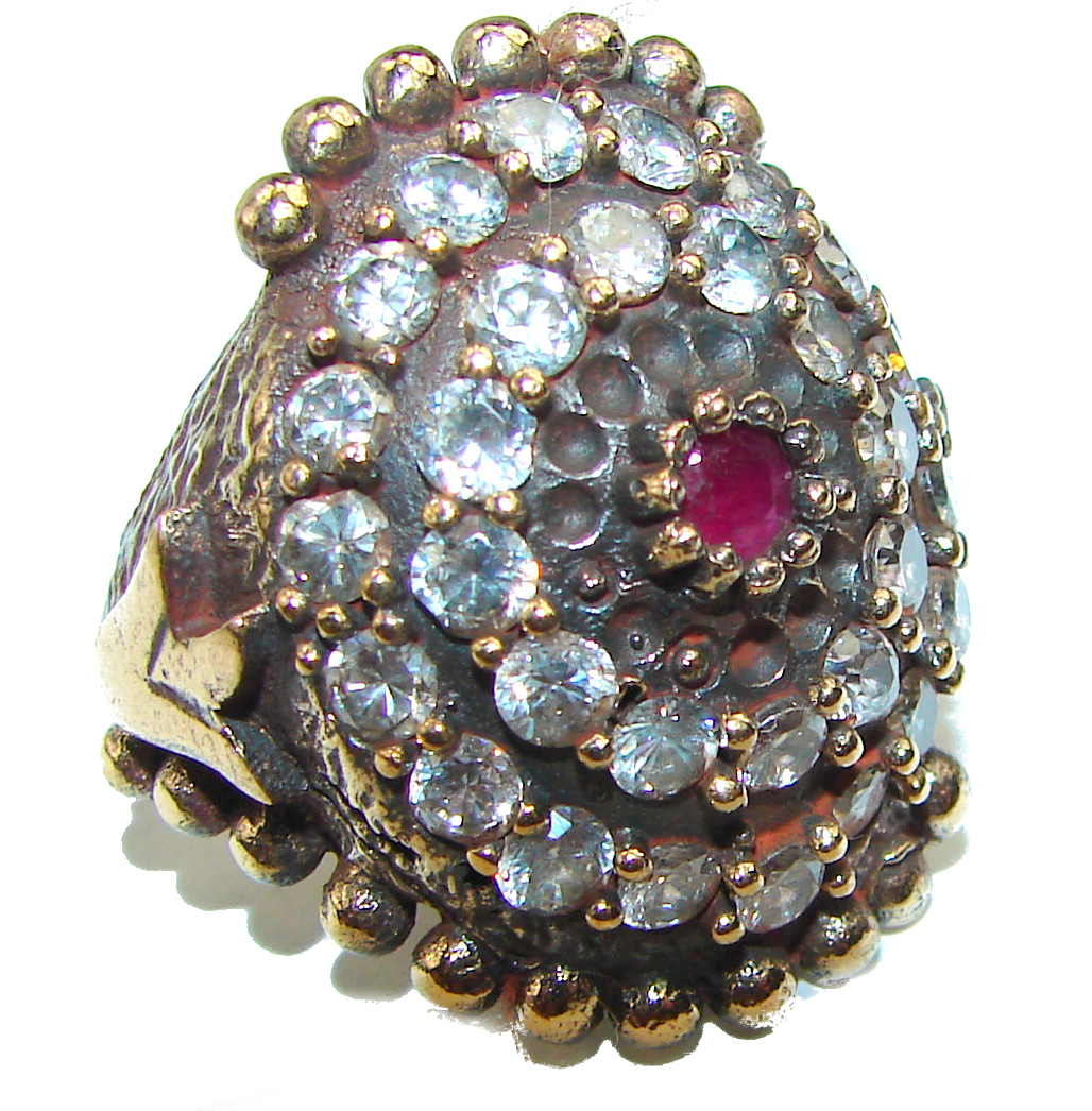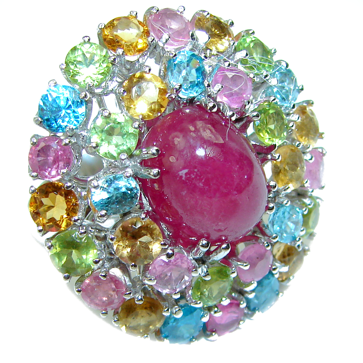 Red Beauty unique Ruby .925 Sterling Silver handcrafted Cocktail Ring size 7 1/4
