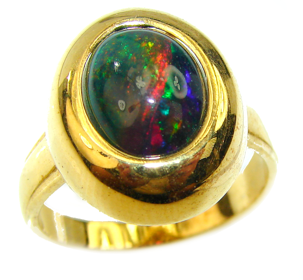 Vintage Design 9.2ctw Genuine Black Opal 14K Gold over .925 Sterling Silver handmade Ring size 8