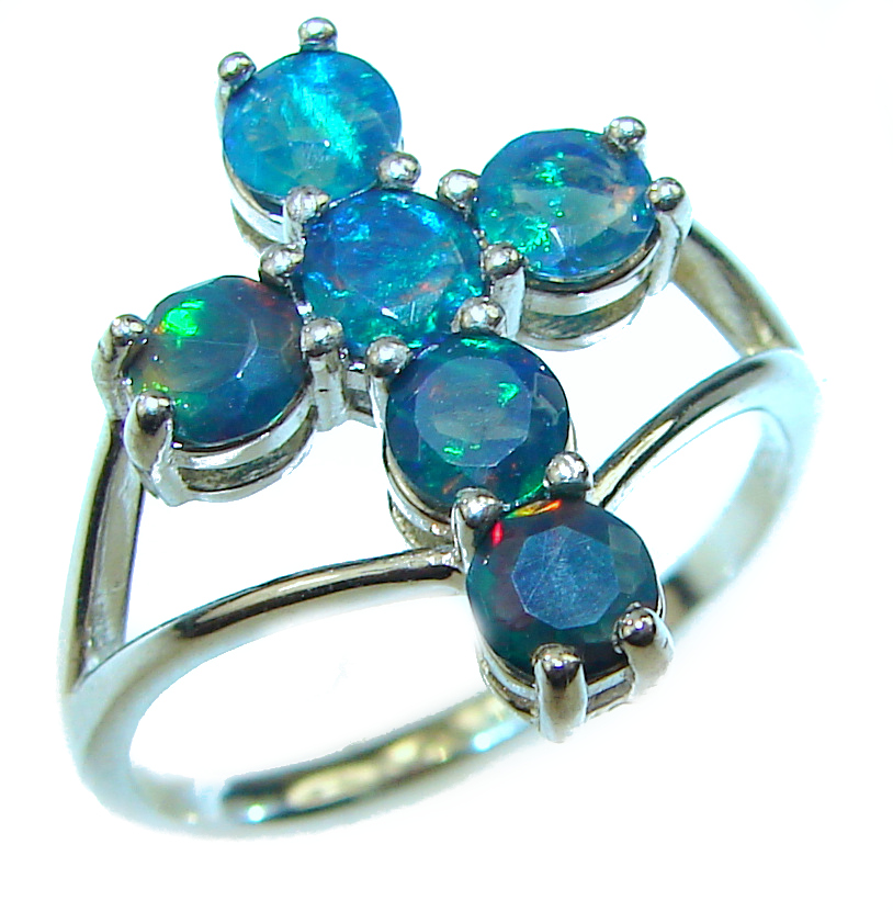 Holy Cross Black Opal .925 Sterling Silver handmade ring size 8 1/4