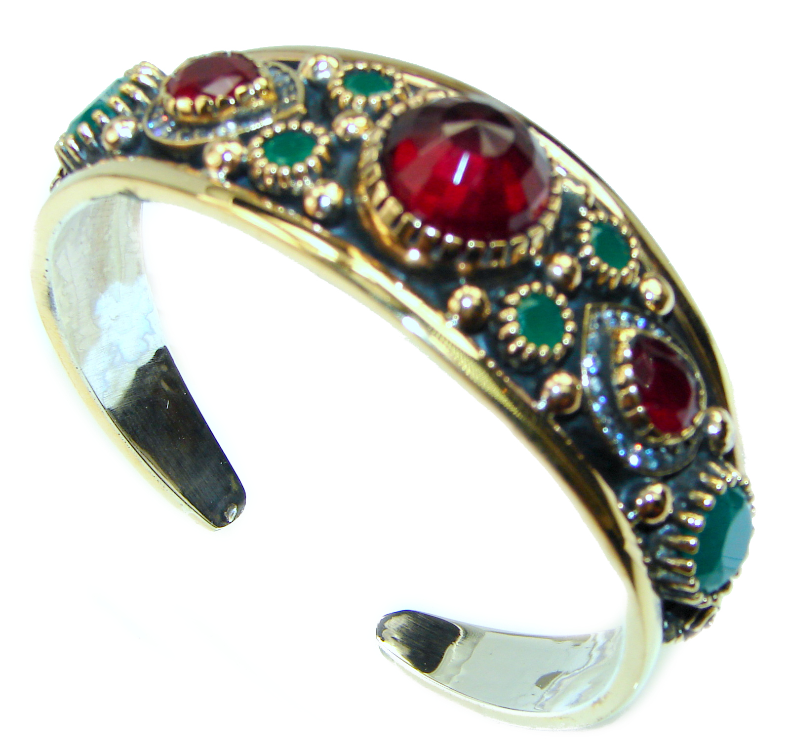 Victorian Style Created Ruby & White Topaz Sterling Silver Bracelet / Cuff
