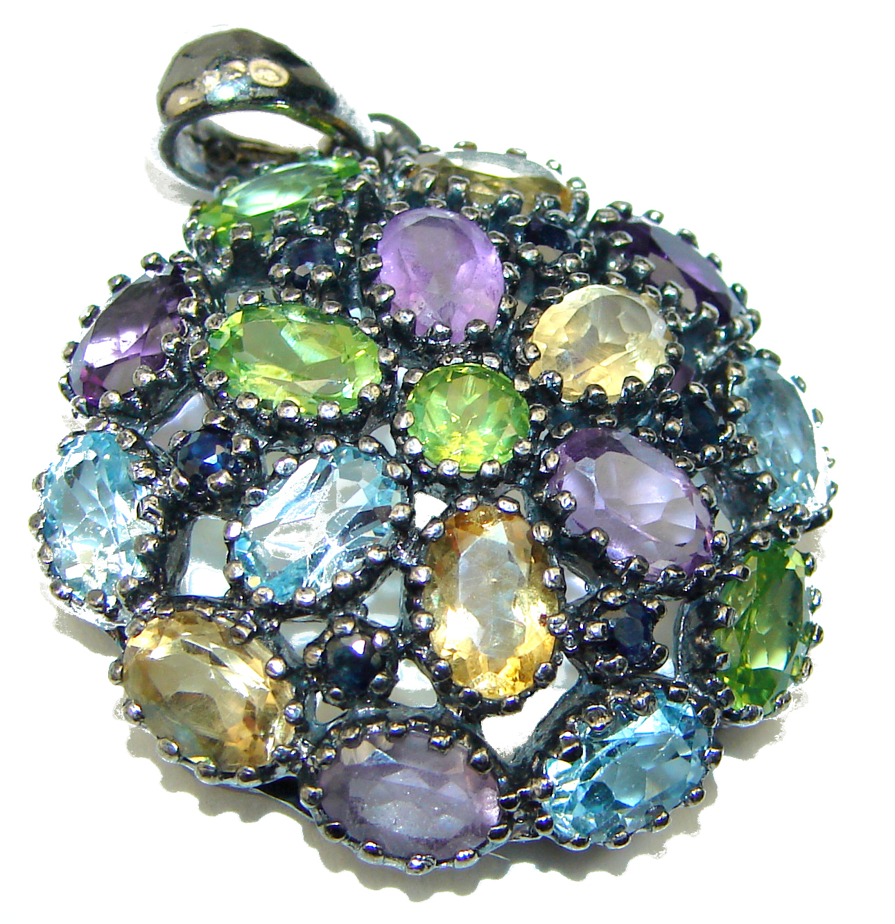 Summer Time authentic Multigem black rhodium over .925 Sterling Silver handcrafted Pendant