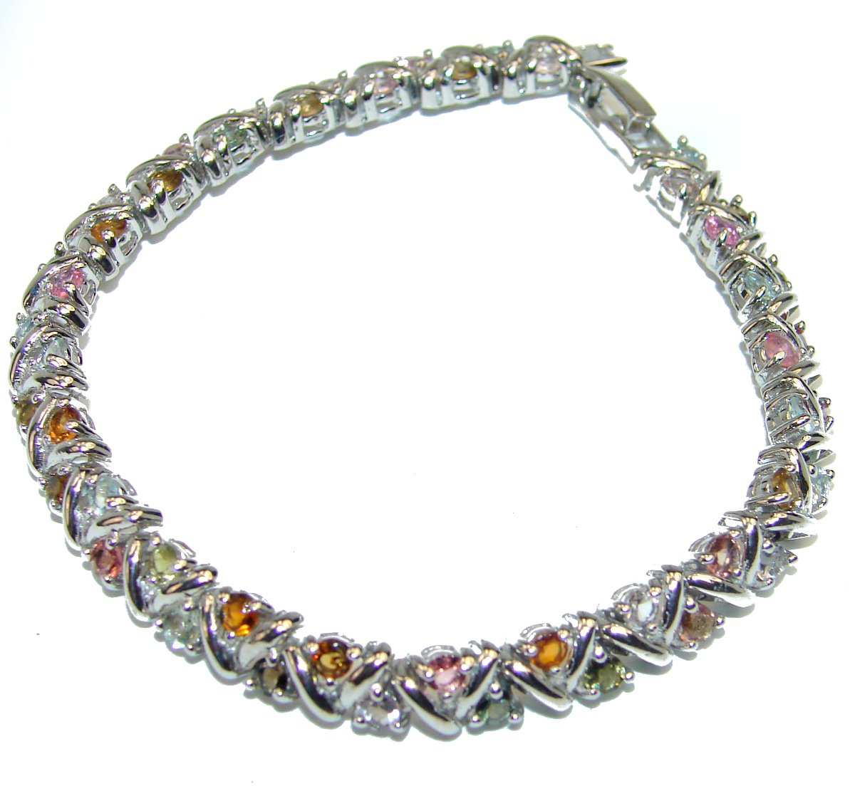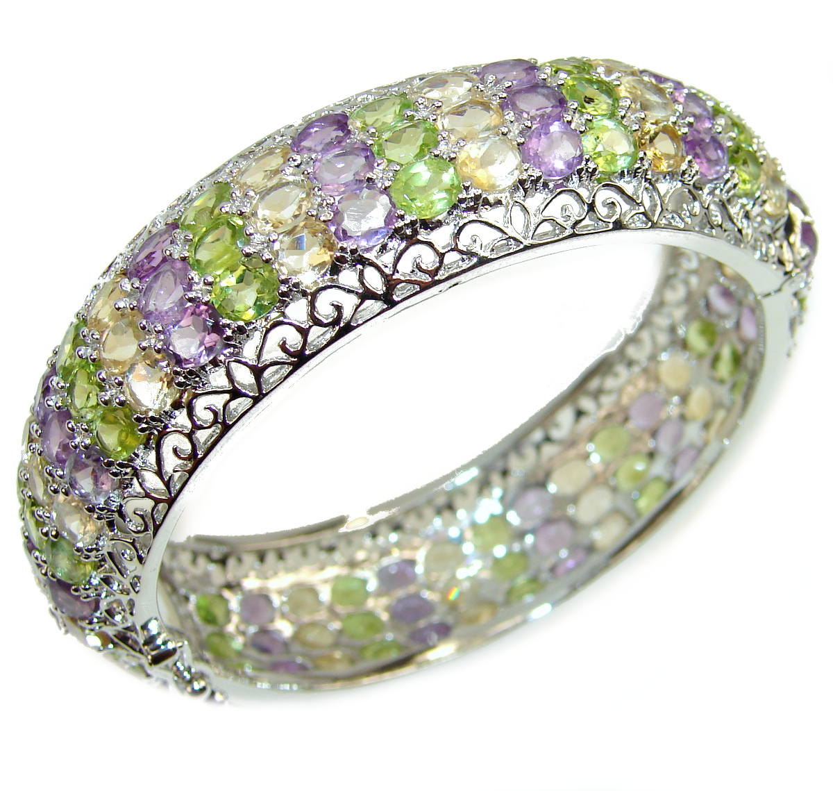 Real Treasure Amethyst Peridot Citrine .925 Sterling Silver Bracelet / BANGLE