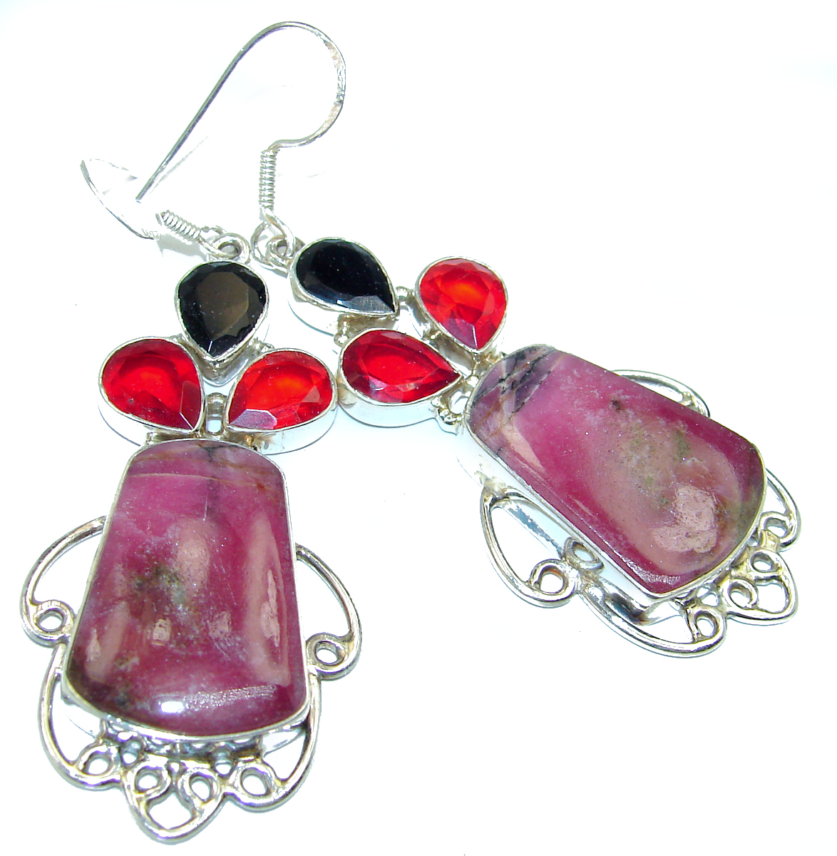 Bold natural Pink Rhodonite .925 Sterling Silver handmade earrings
