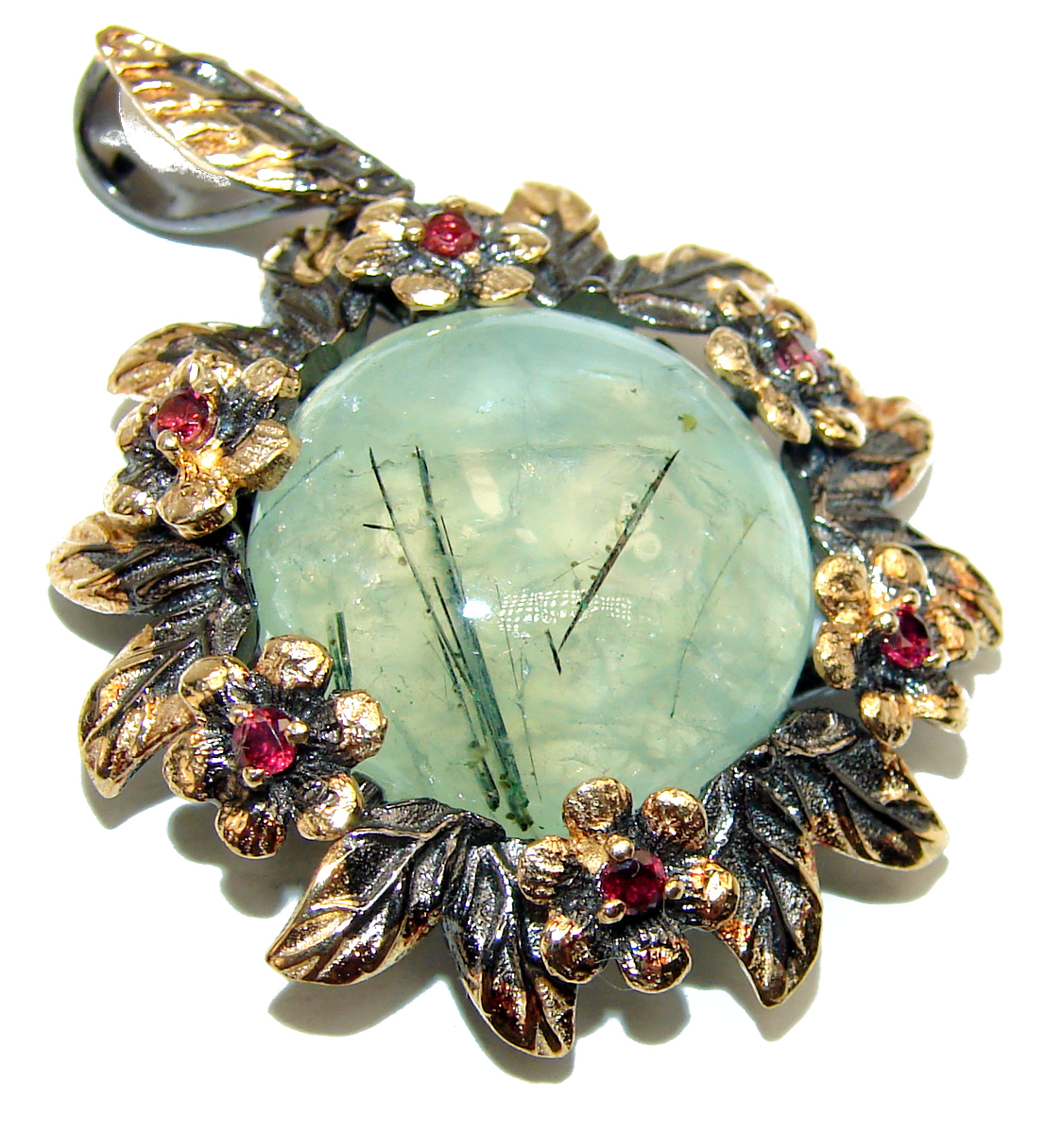 Gabriell Prehnite black rhodium over .925 Sterling Silver handmade Pendant