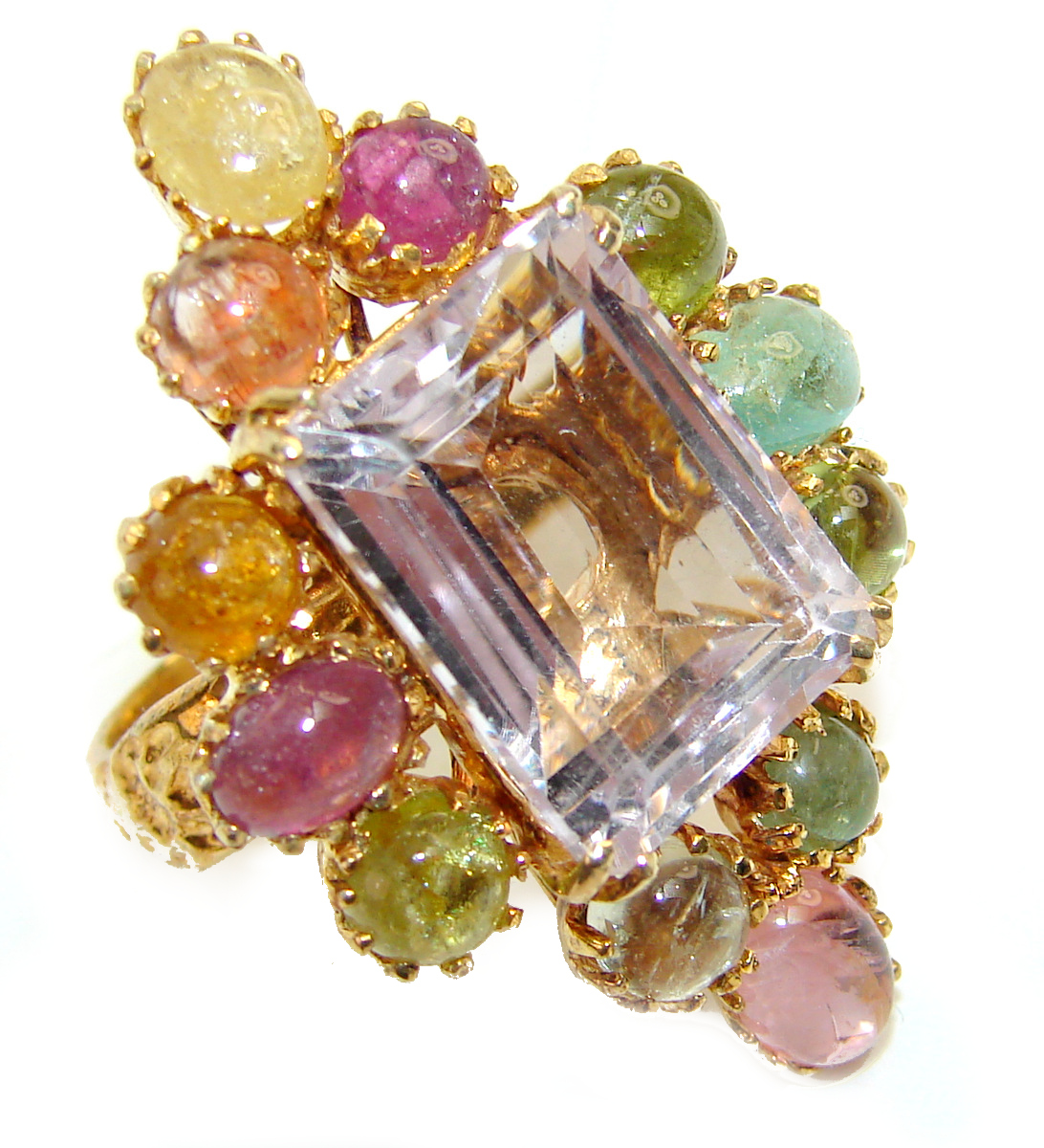Large genuine Pink Amethyst 14k Gold over .925 Sterling Silver handcrafted Ring size 8