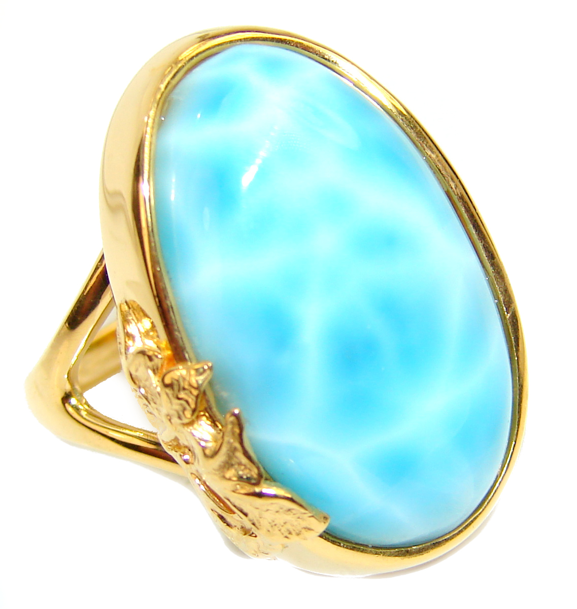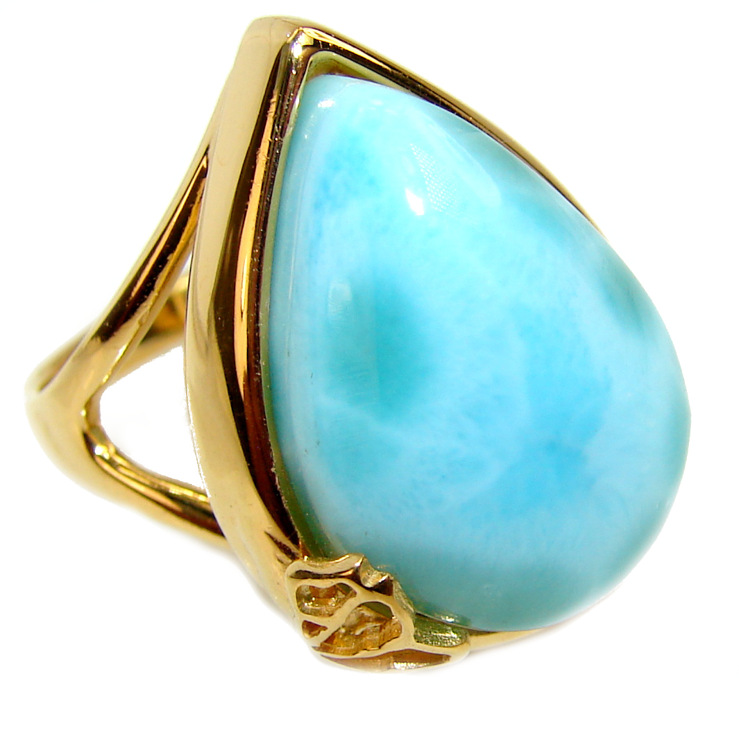 25.6 carat Larimar 18K White Gold over .925 Sterling Silver handcrafted Ring s. 7 1/2