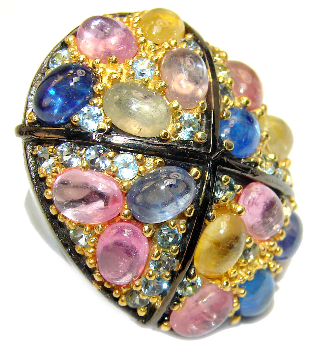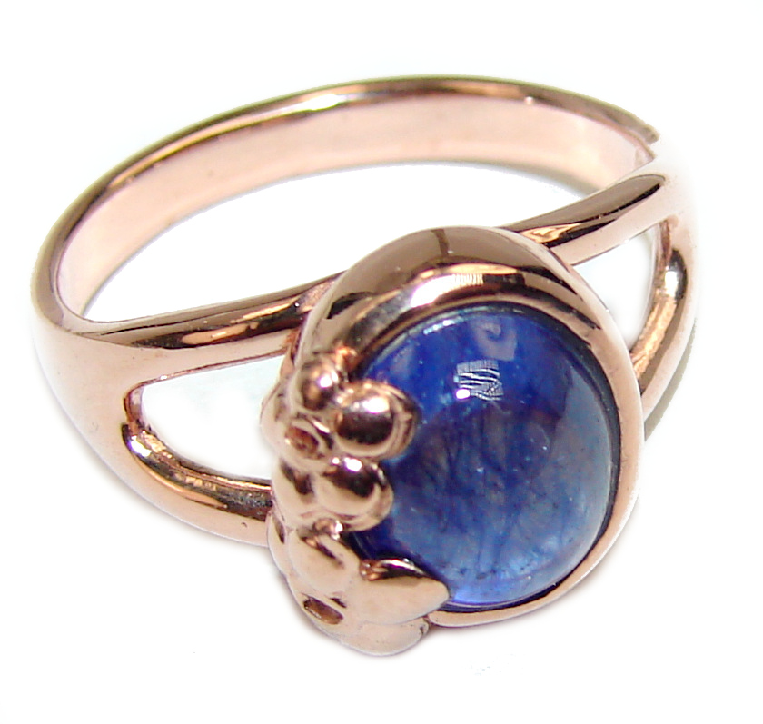 Royal quality unique Sapphire 18K Gold over .925 Sterling Silver handcrafted Ring size 6 1/4