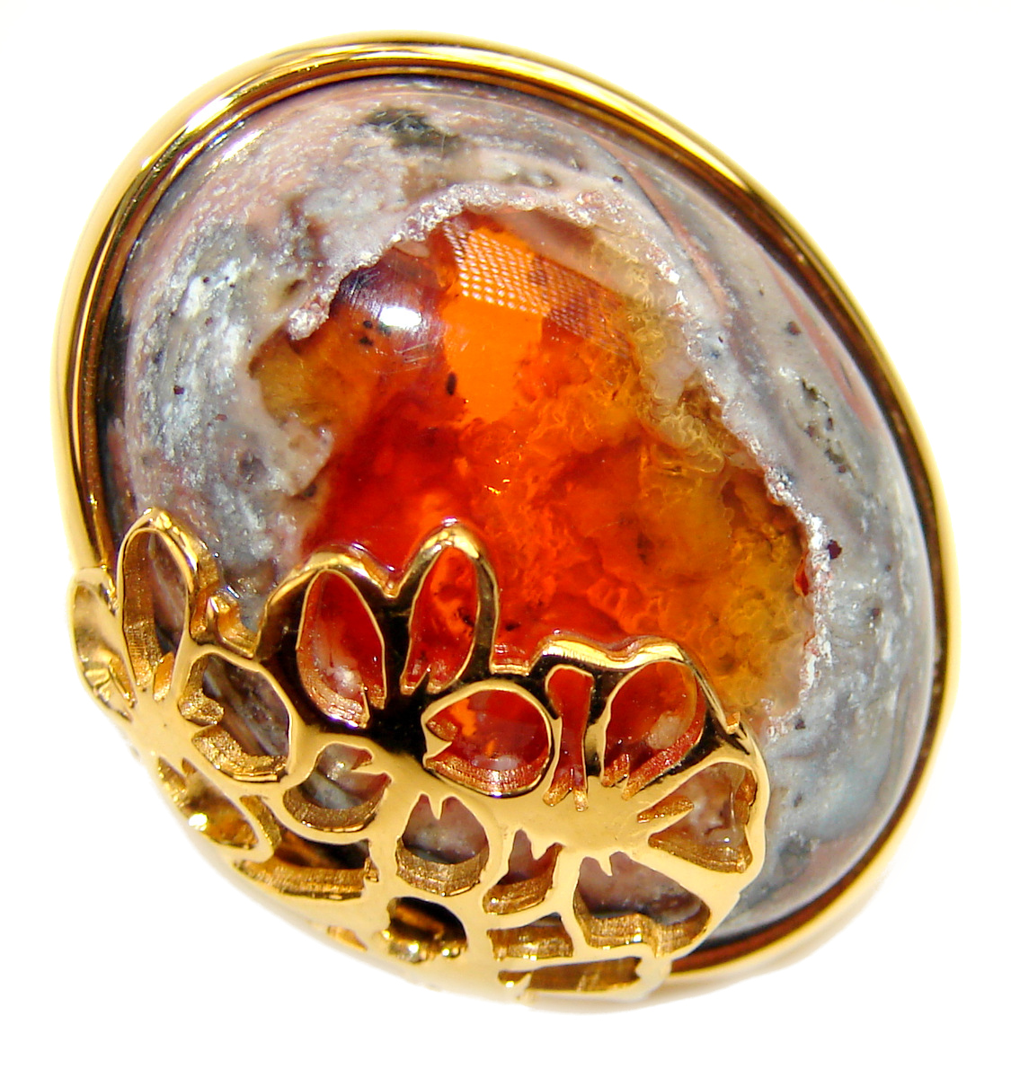 Excellent quality Mexican Opal 18K Gold over .925 Sterling Silver handcrafted Ring size 8