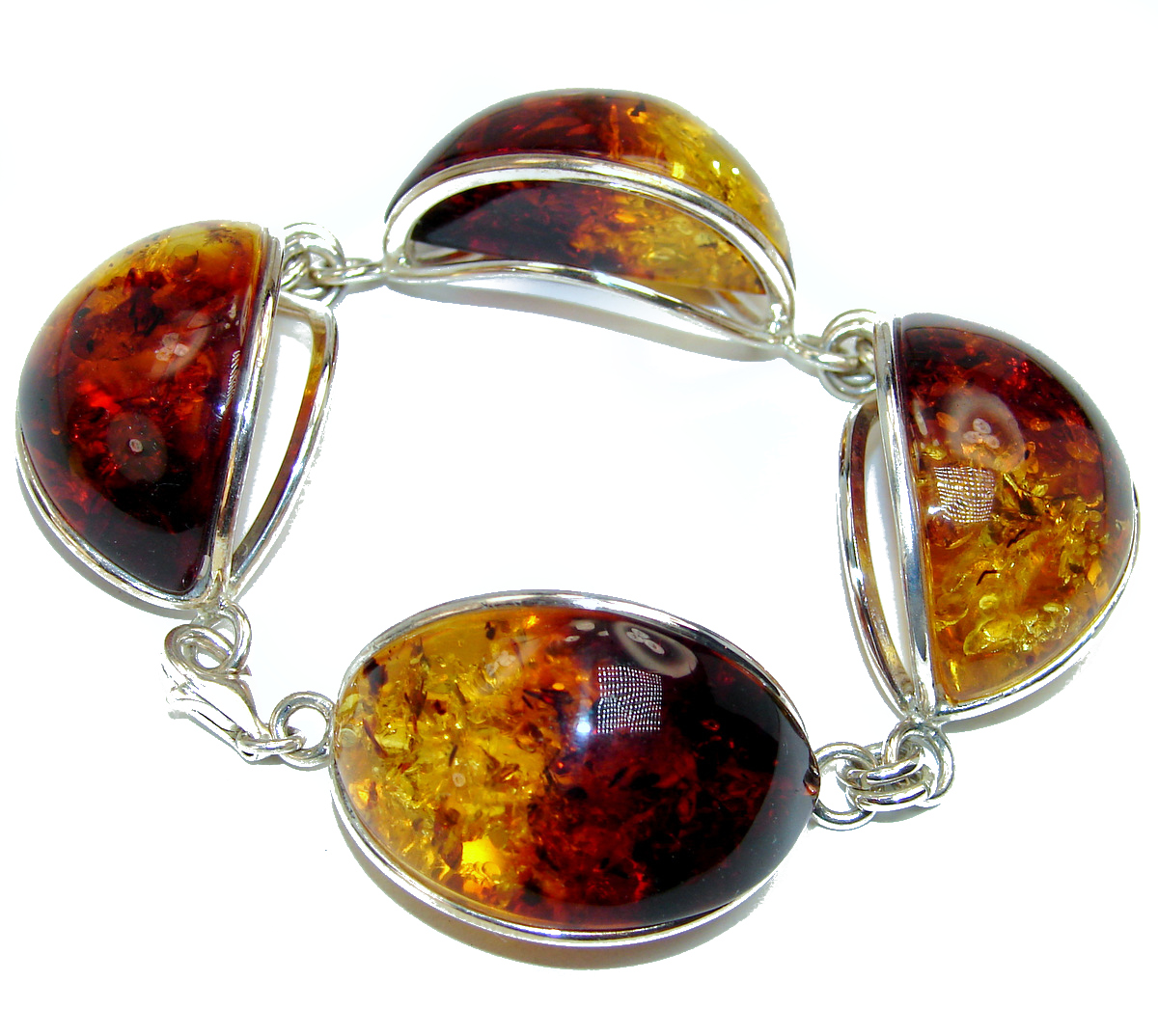 Beautiful genuine Baltic Amber .925 Sterling Silver handcrafted Large Bracelet