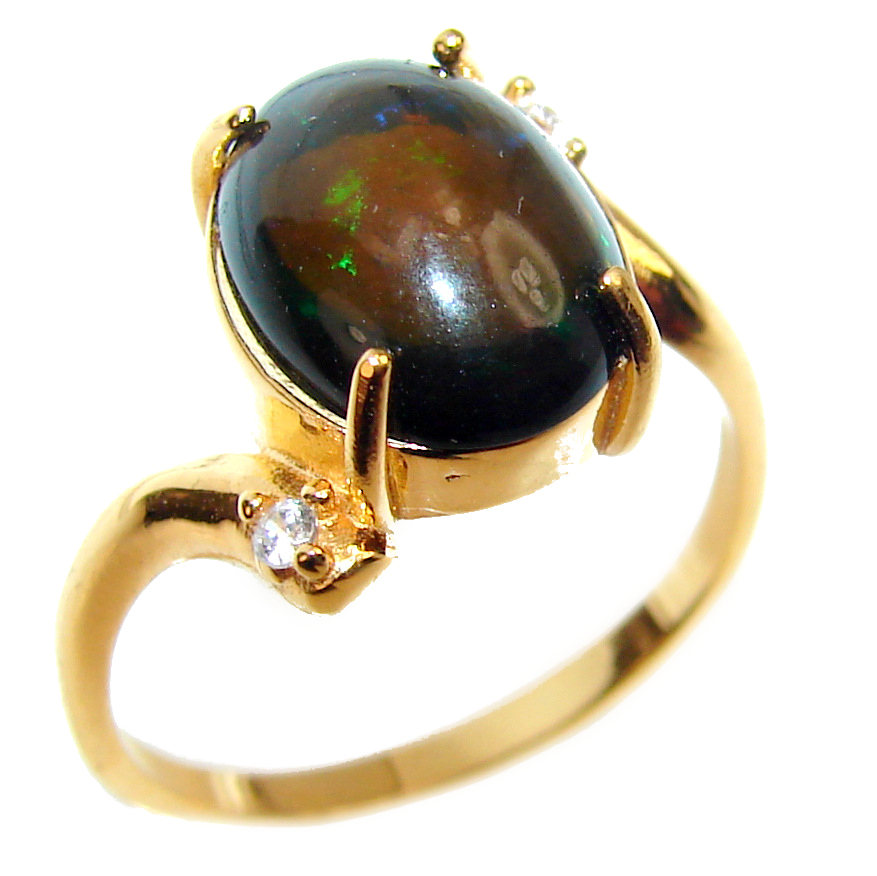 Vintage Design 8.2ctw Genuine Black Opal 18K Gold over .925 Sterling Silver handmade Ring size 8