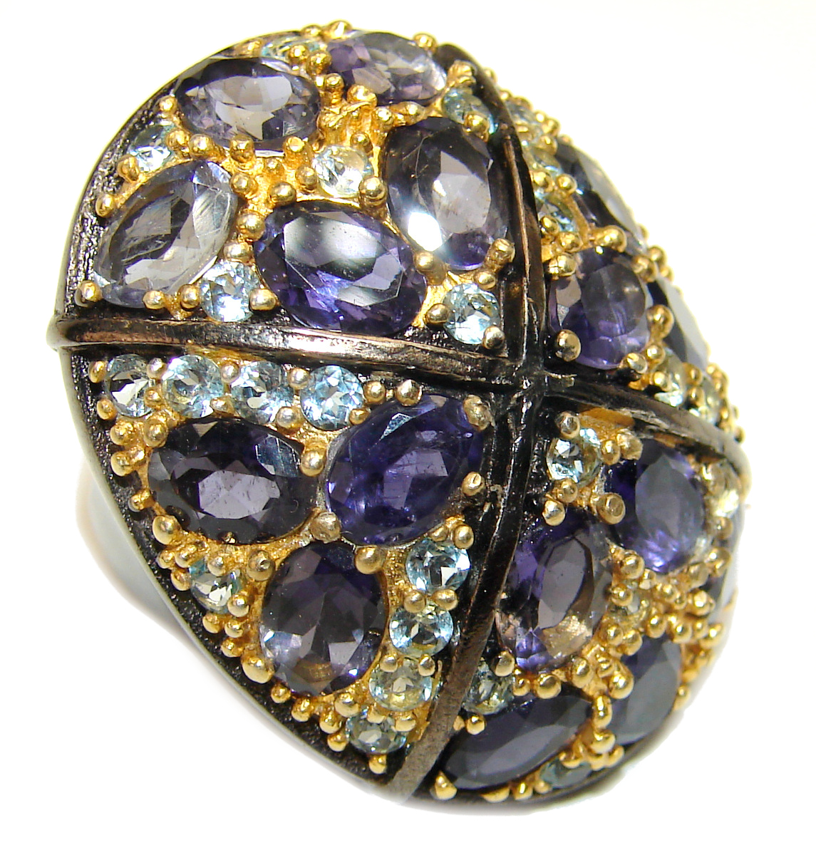 Brazilian Iolite Kyanite black rhodium over .925 Sterling Silver handmade ring size 7