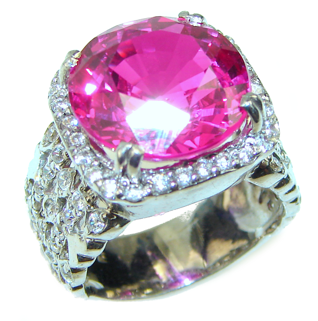22.5 carat Pink Topaz .925 Silver handcrafted Huge Cocktail Ring s. 6 1/4