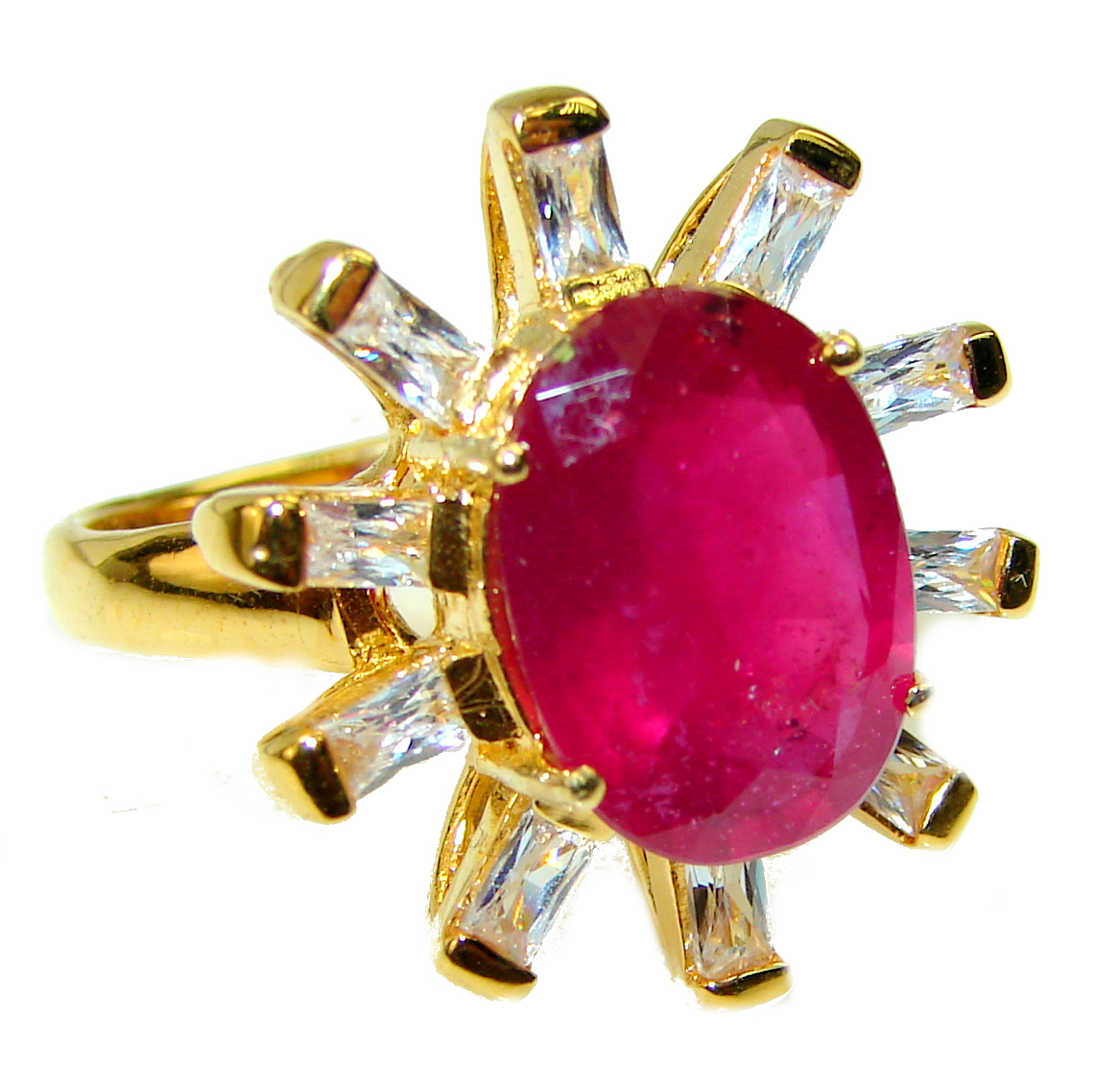Fancy Authentic Ruby 14K Golden over .925 Sterling Silver Ring size 8