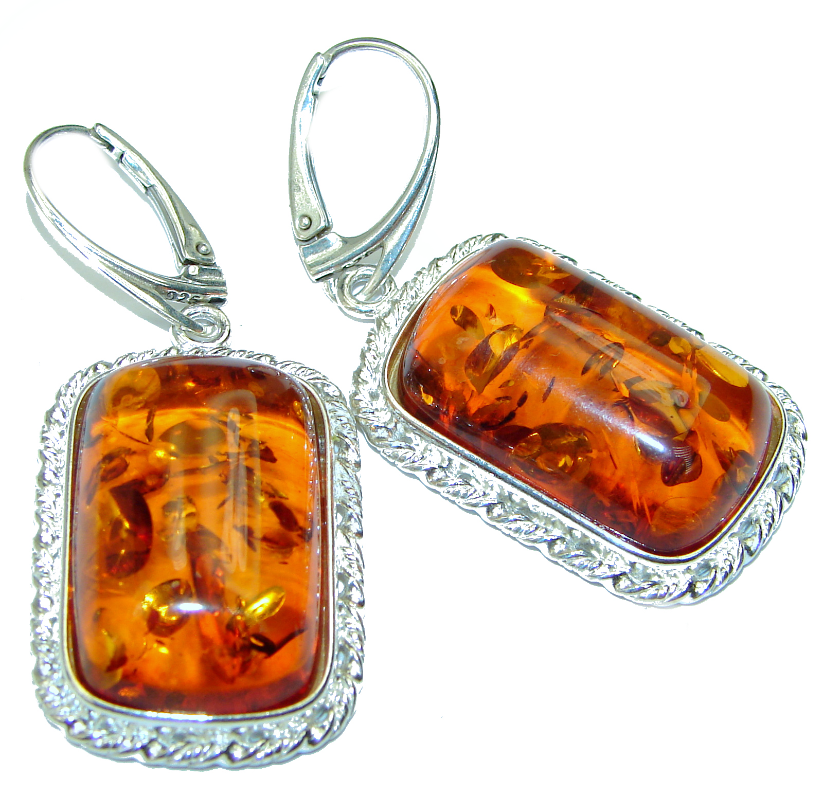 Huge Baltic Polish Amber .925 Sterling Silver Earrings