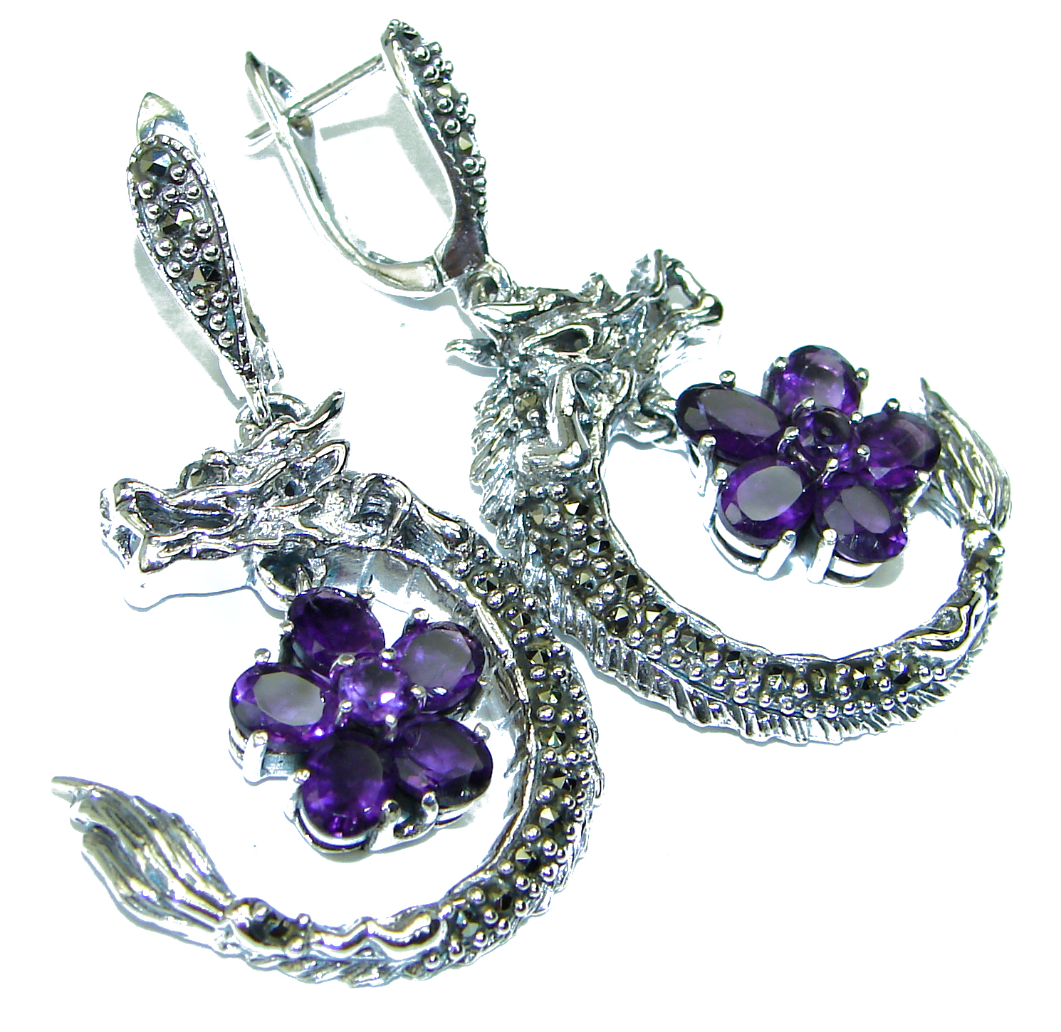 Flaying Dragons authentic Amethyst .925 Sterling Silver Bali made earrings