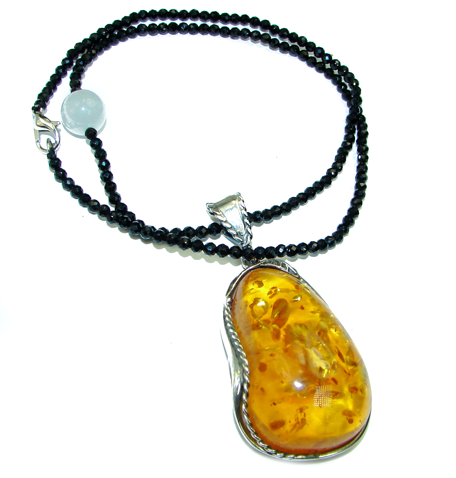 Natural Beauty Golden Polish Amber Jade .925 Sterling Silver handmade necklace