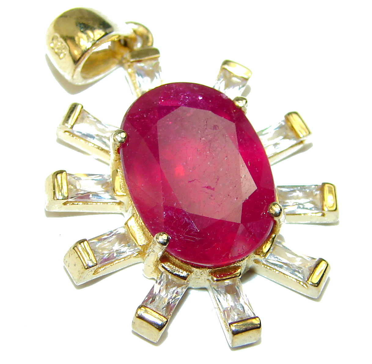 Fancy Authentic Ruby 14K Golden over .925 Sterling Silver handmade Pendant