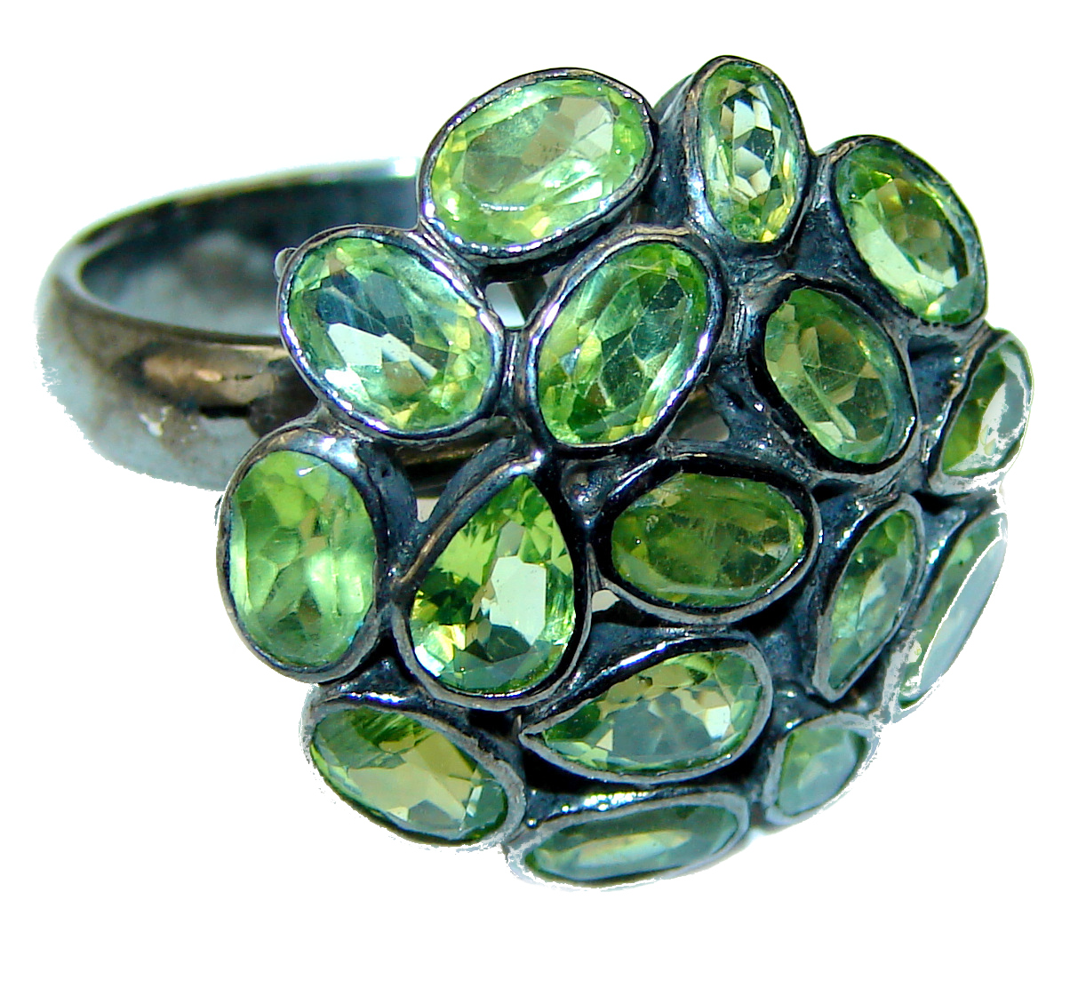 Green Power Peridot black rhodium over .925 Sterling Silver ring s. 7 3/4