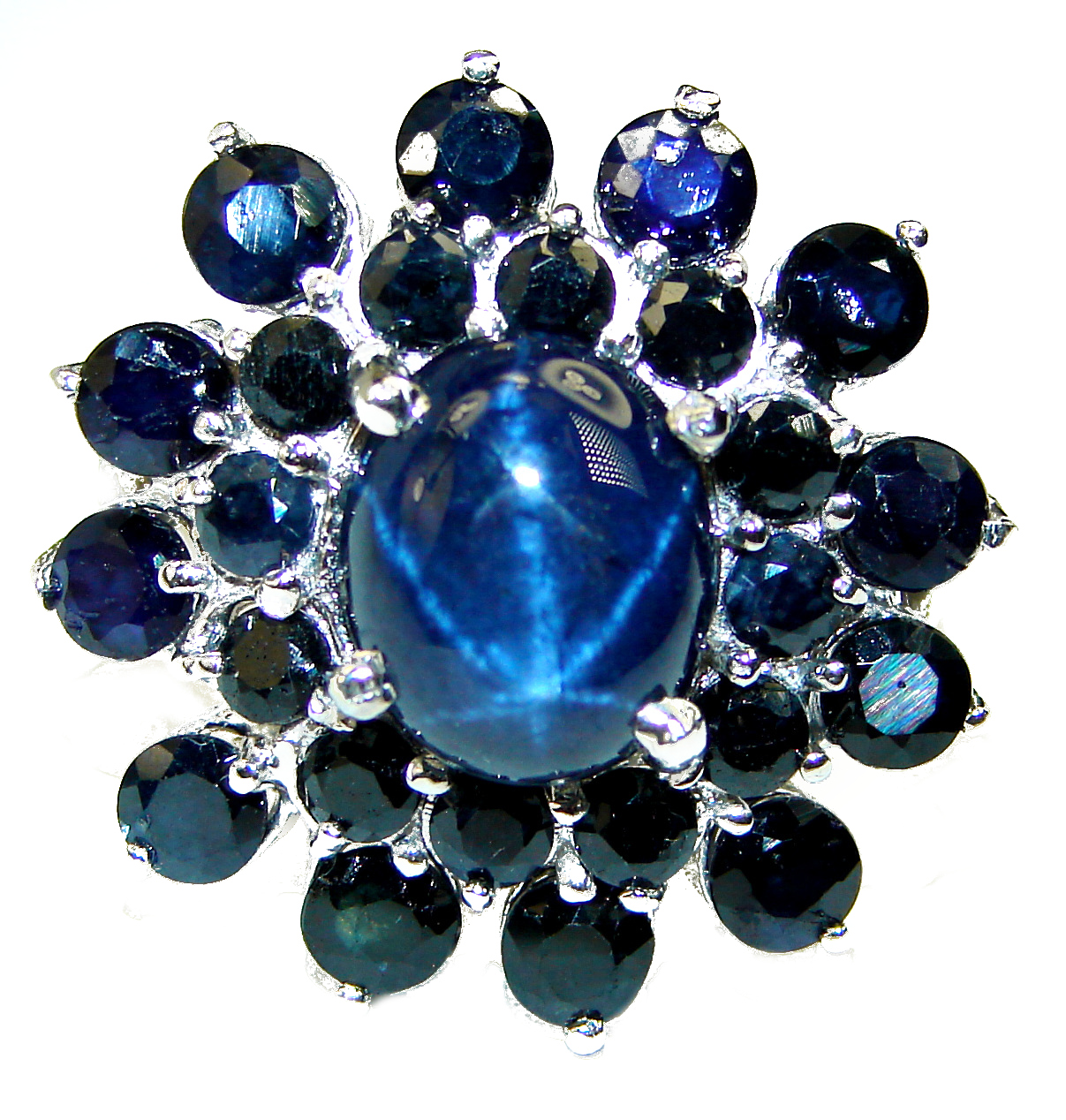Blue Treasure 10.5 carat authentic Star Sapphire .925 Sterling Silver Statement Ring size 8 1/2