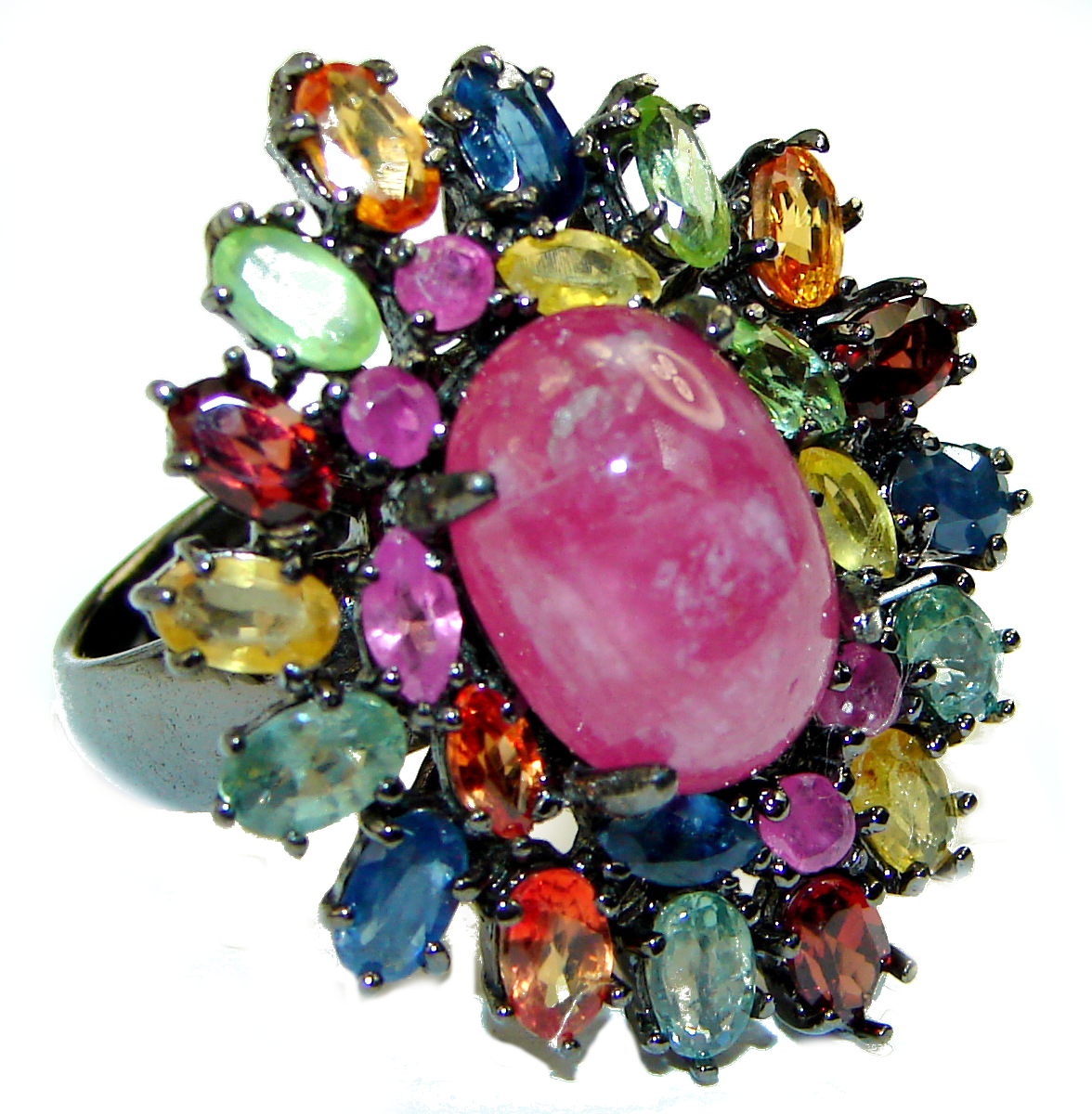 Great quality unique Ruby Tourmaline .925 Sterling Silver handcrafted Ring size 7 3/4