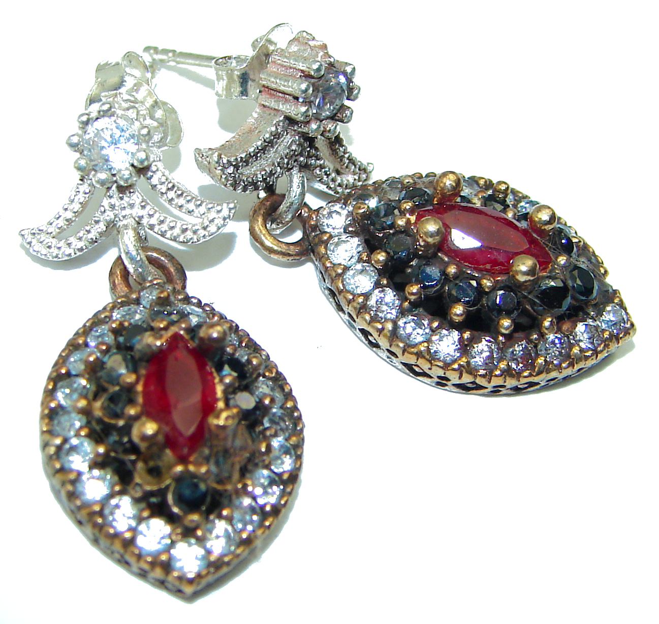 Victorian Style created Ruby .925 Sterling Silver handcrafted earrings
