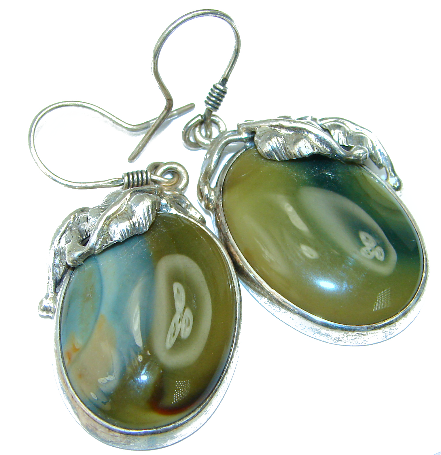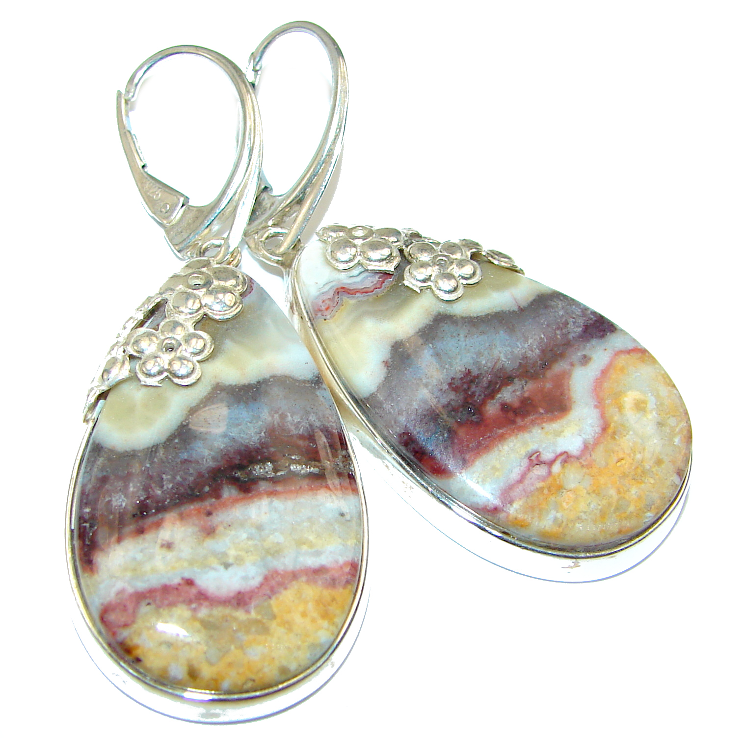Unique Bohemian Style Crazy Lace Agate .925 Sterling Silver handcrafted Earrings