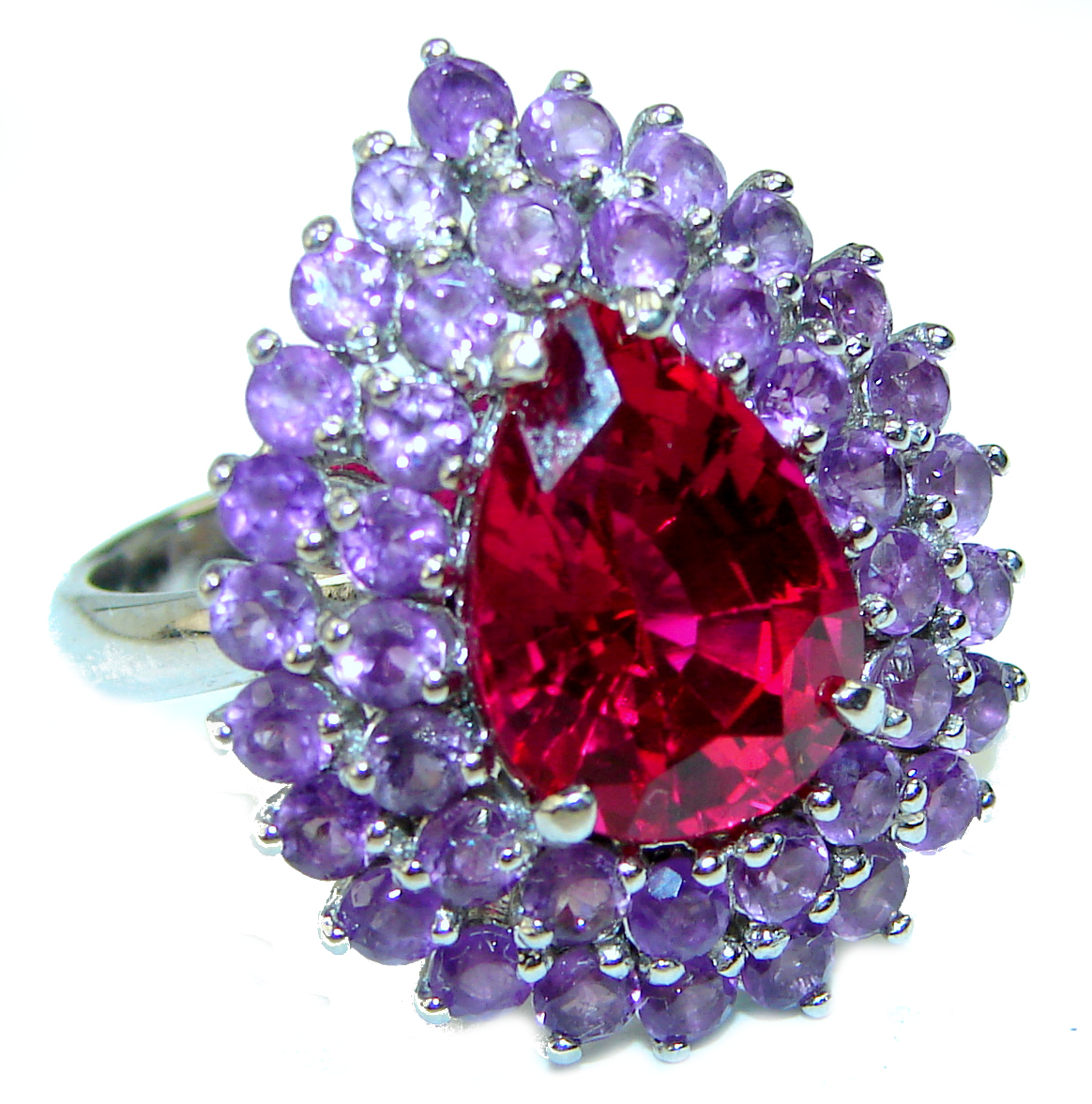 Powerful Red Beauty authentic Topaz .925 Sterling Silver handcrafted Ring size 8