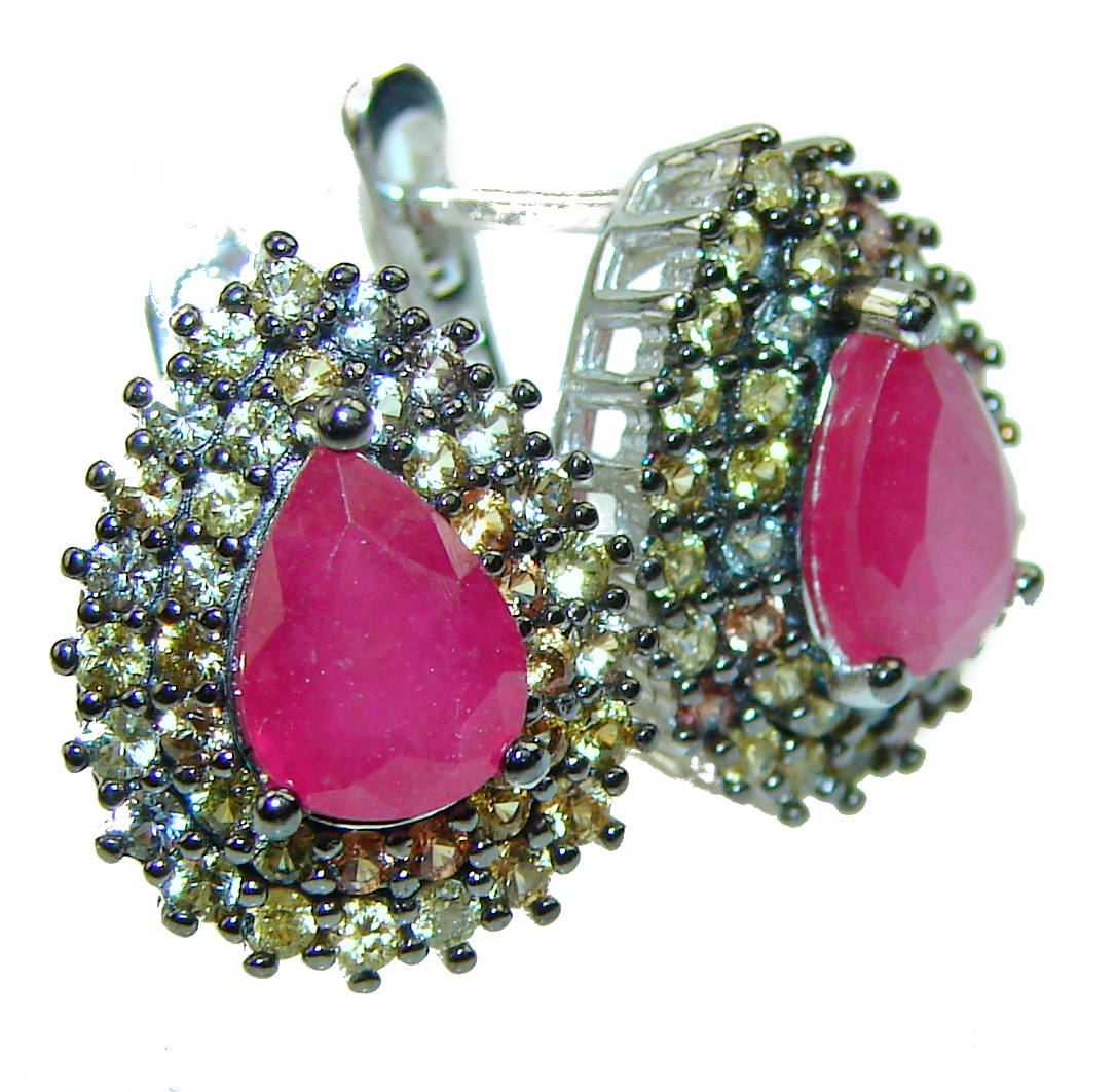 Spectacular 10.5 carat Ruby Sapphire .925 Sterling Silver handcrafted earrings