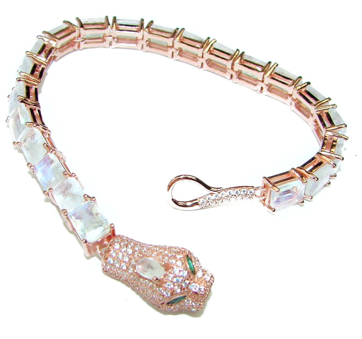 White Snake Fire Moonstone 14K Rose Gold over .925 Sterling Silver handmade Bracelet