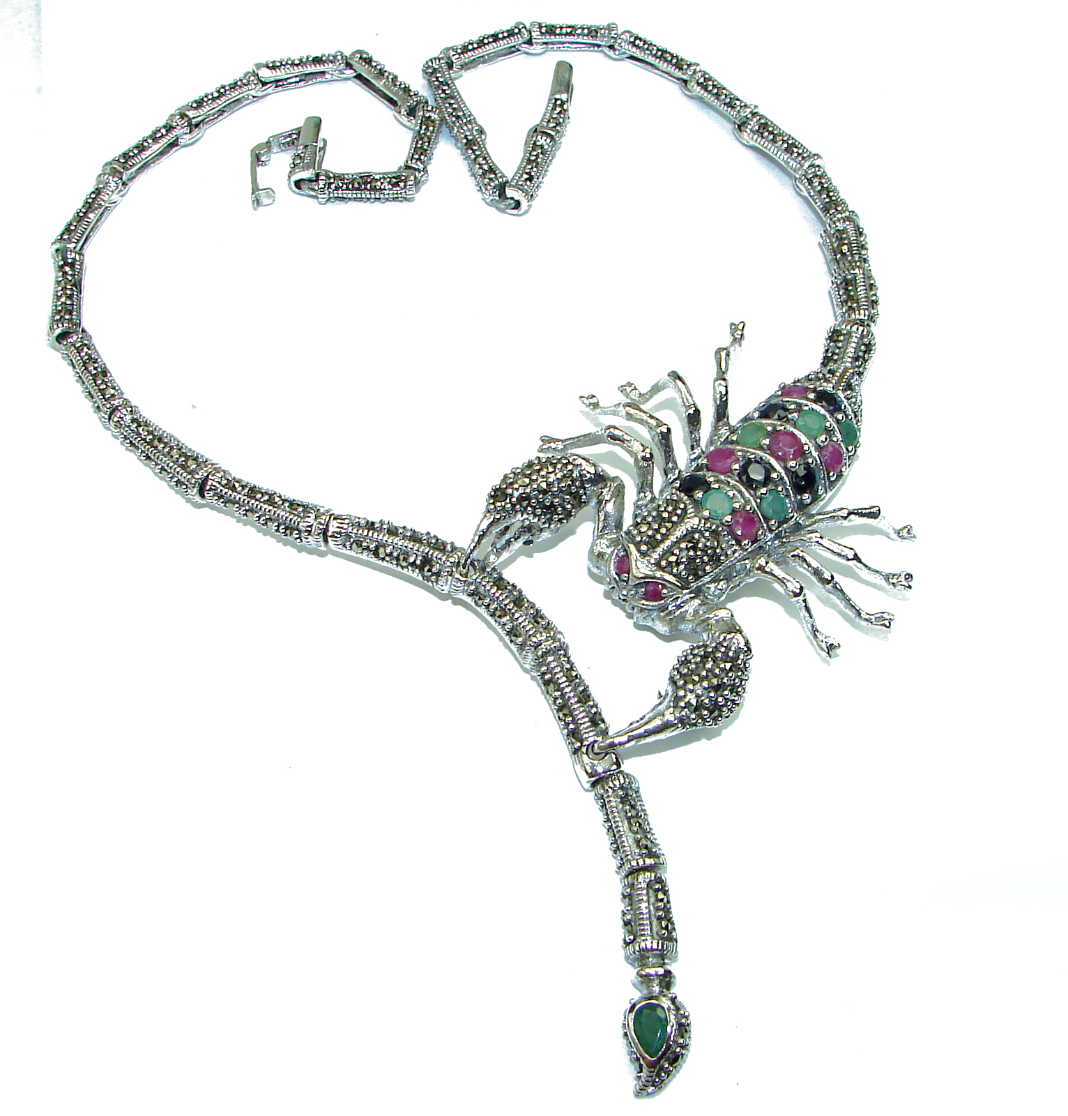 Large SCORPIO Genuine Emerald Marcasite .925 Sterling Silver handmade handcrafted Necklace