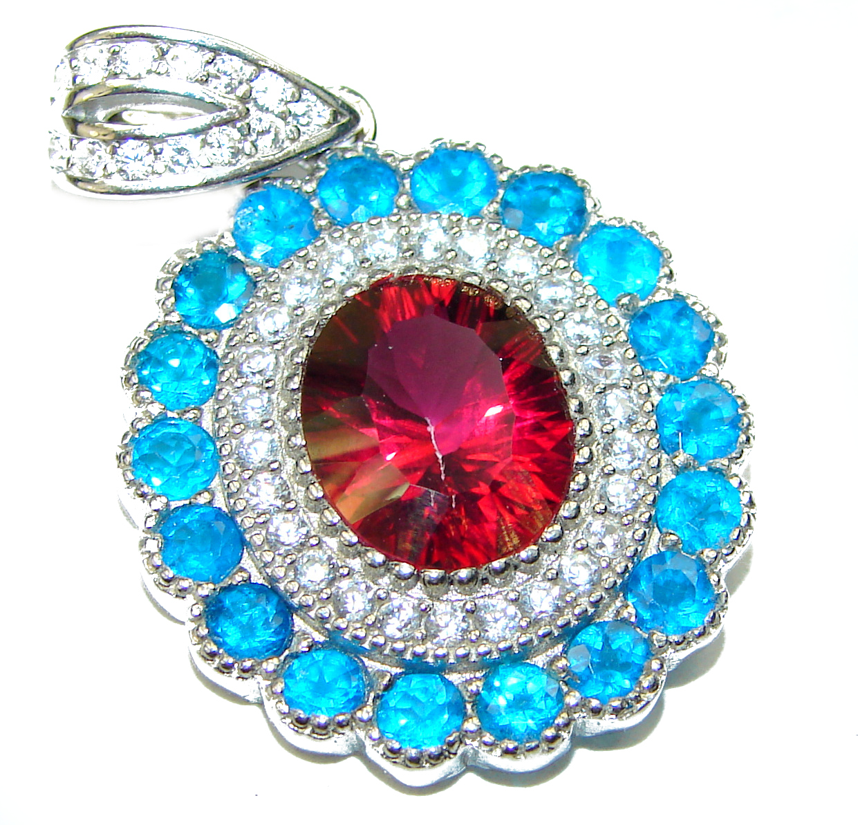 8.5 carat Deep Red Topaz .925 Sterling Silver handmade Pendant