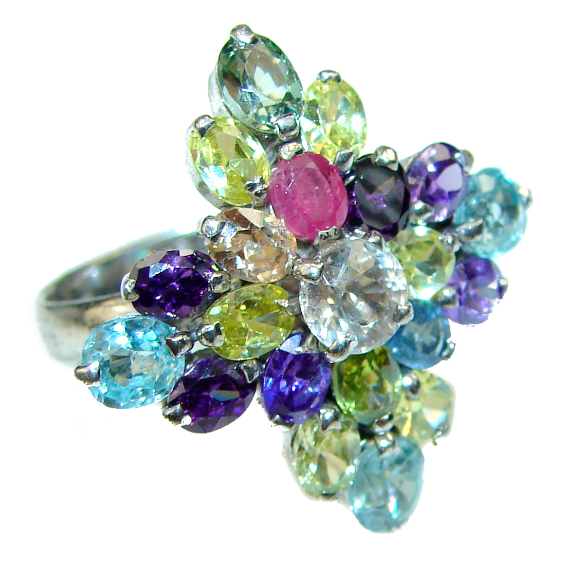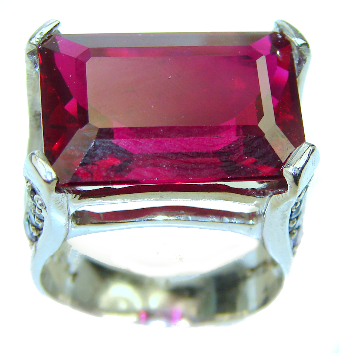 Massive Incredible unique Red Topaz Ruby .925 Sterling Silver handcrafted Cocktail Ring size 8