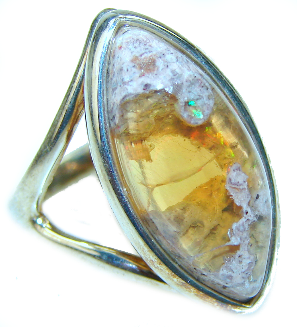 Rare Mexican Opal .925 Sterling Silver handcrafted Ring size 6 3/4