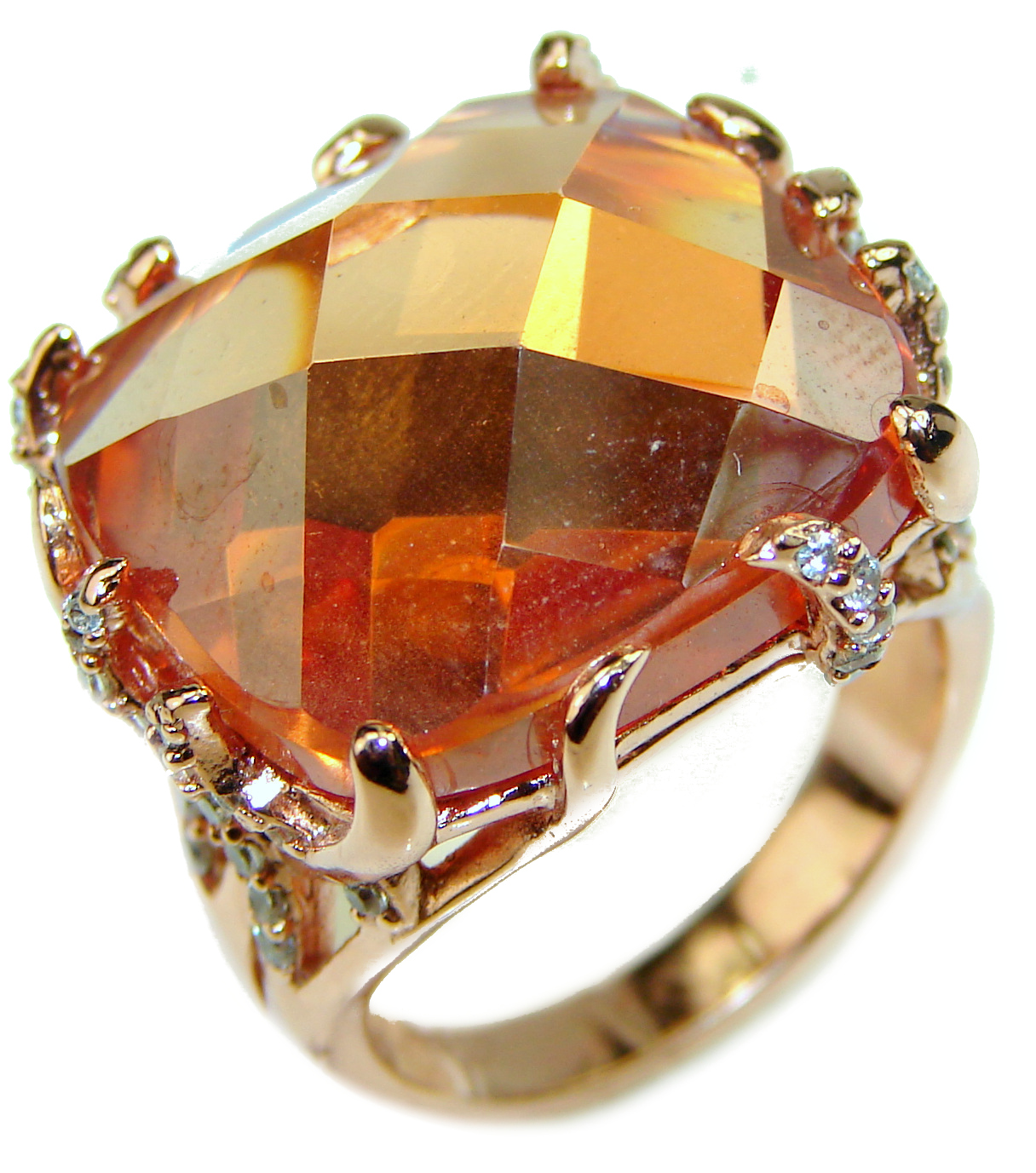 Orange Power Golden Topaz .925 Sterling Silver handcrafted Large ring; s. 7