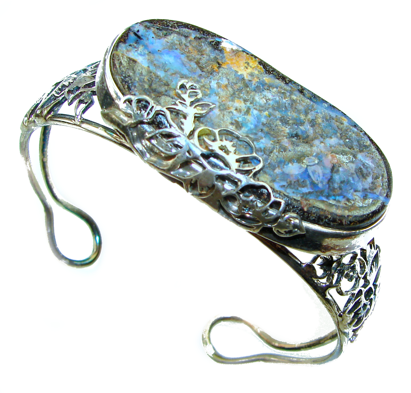 Norwegian Northern Lights Boulder Opal handmade .925 Sterling Silver Bracelet