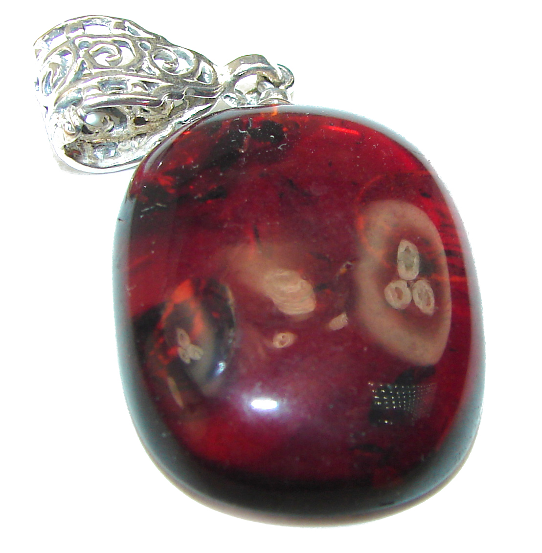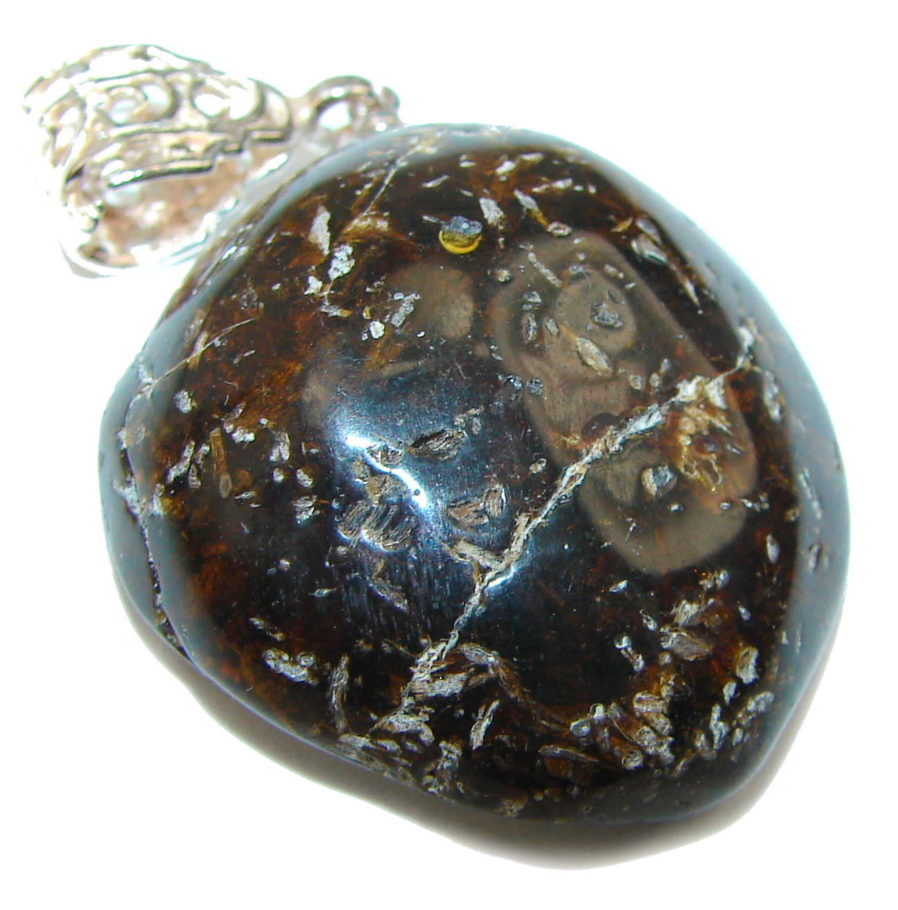 Dark Baltic Amber .925 Sterling Silver handmade Pendant