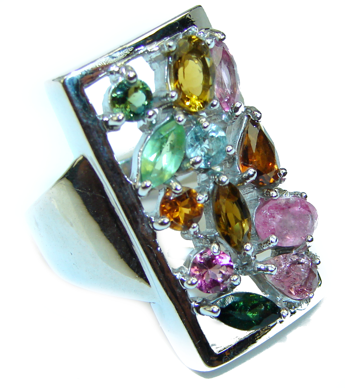 Natural Watermelon Tourmaline .925 Sterling Silver handcrafted ring; s. 8