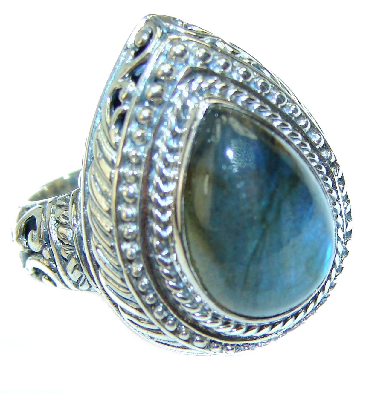 Vintage Design GENUINE Labradorite .925 Sterling Silver handcrafted ring size 6