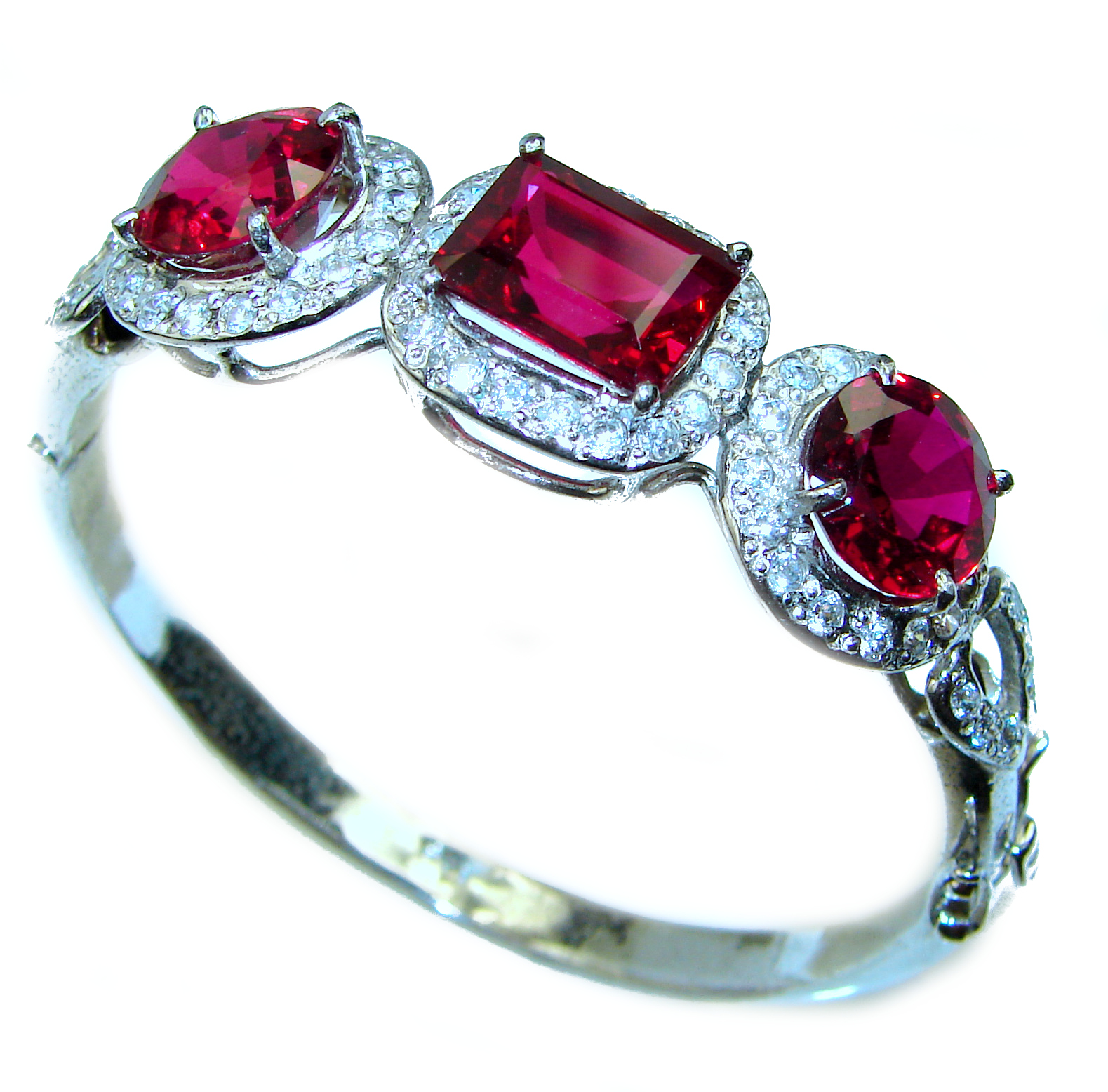Precious Natural Rich Red Topaz .925 Sterling Silver Bangle