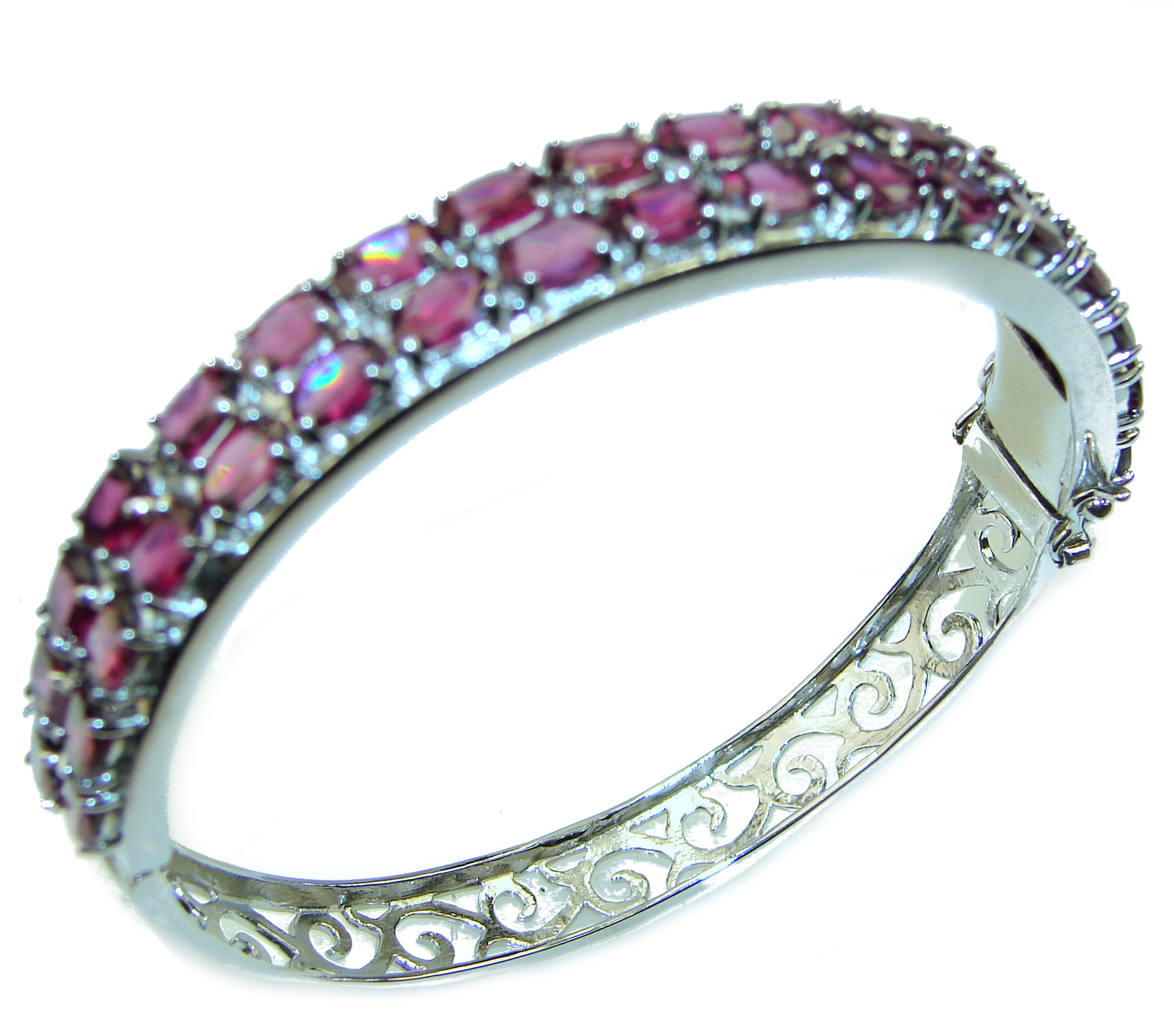 Precious Natural Rich Pink Raspberry Rhodolite Garnet 925 Sterling Silver Bangle