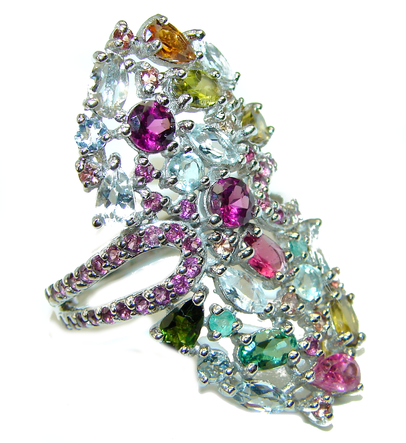 Real Beauty authentic Garnet Aquamarine .925 Sterling Silver Ring size 8