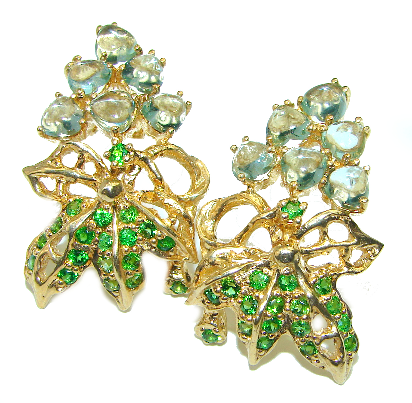 Juicy Grages Green Amethyst Gold over .925 Sterling Silver handcrafted incredible earrings
