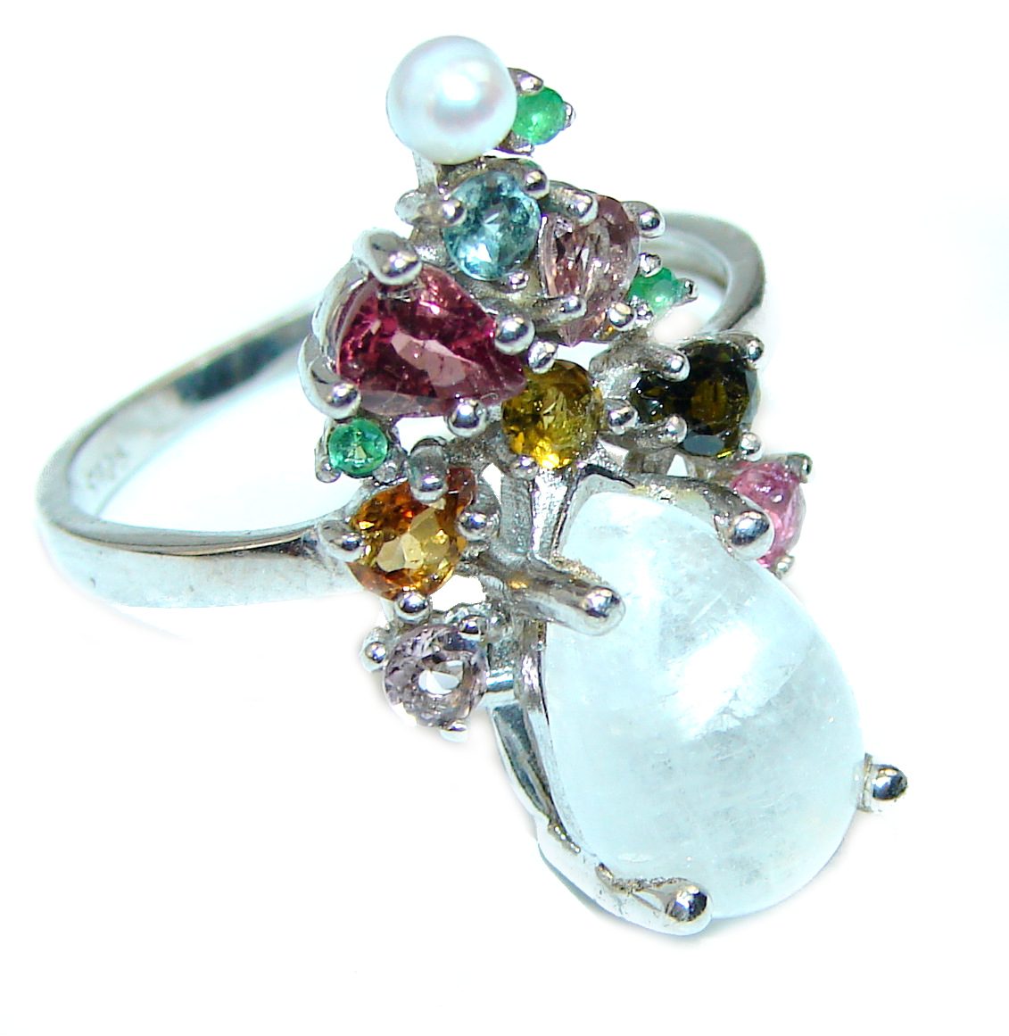 Natural Moonstone Chrome Diopside .925 Sterling Silver handmade ring s. 8 3/4